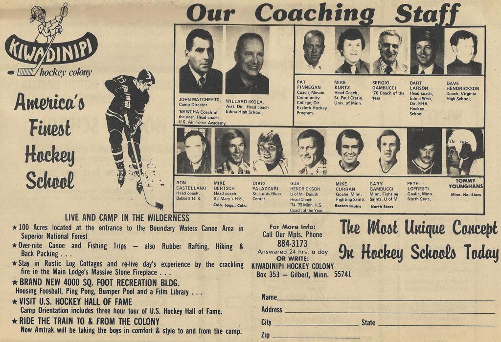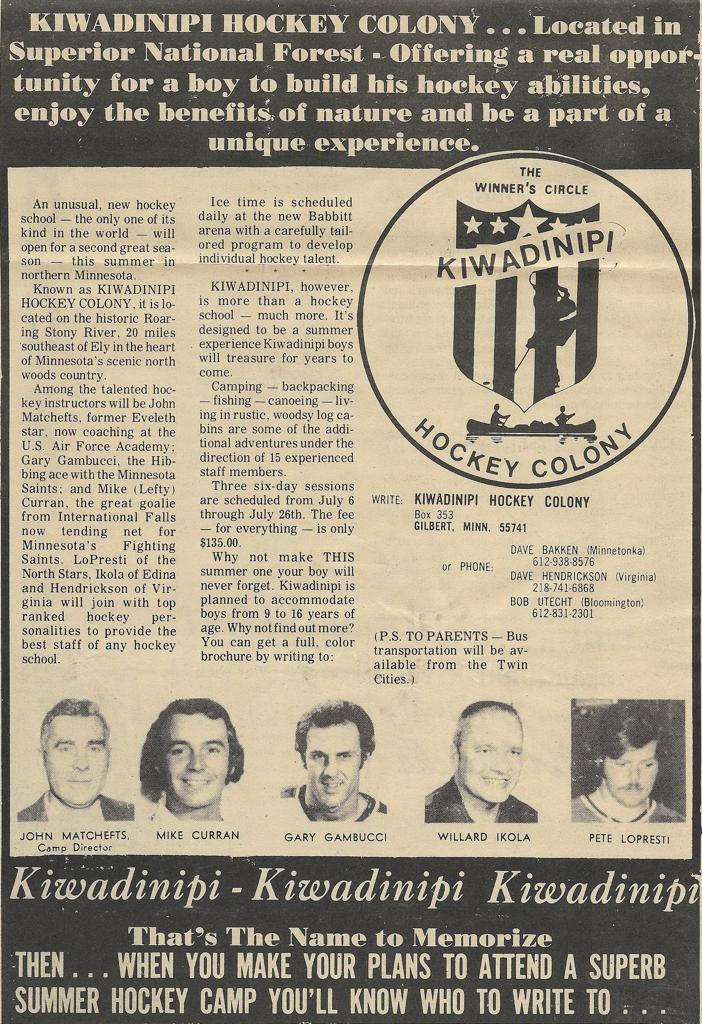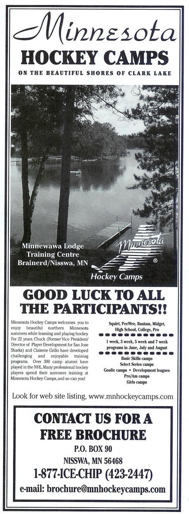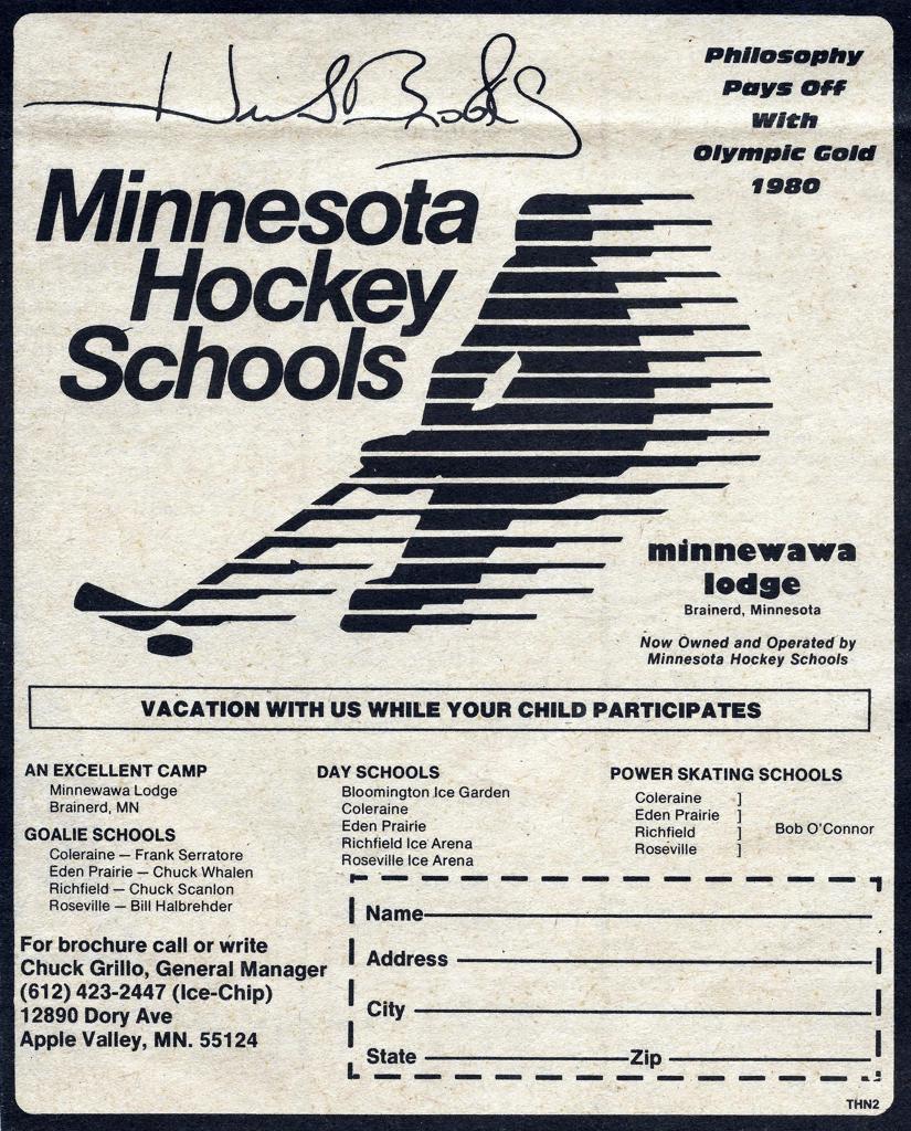 Minnesota's rich hockey history has namely been written in the annals of Minnesotas long winter months when the leaves begin to fall, lakes turn to ice rinks and local communities make natural outdoor ice with sub-zero temperatures. Following the March Madness at the Minnesota High School Hockey Tournament, and the conclusion of the NHL season in late Spring - hockey is never over now-adays within the State-of-Hockey. Summer hockey schools and camps have a rich history of their own dating back some 50+ years with names such as Herb Brooks, Lou Nanne, Brad Beutow, Ken Yackel, Bob Peters, Doug Woog, Chuck Grillo and numerous others hockey minds within Minnesota leading the way with off-season development. Countless youth across the state have gone to these Minnesota Hockey Schools/Camps, and continue to do so in the warm summer months to try and gain a competitive advantage over their counterparts come November, when traveling teams and competitive level try-outs take place across the state. Places such as Minnewana Lodge, Camp Kiwadinipi, Heartland Hockey Camp, Bemidji Summer Hockey School and countless others have trained Minnesotas' youth players, to pros alike across the State of Hockey. Ken Yackel is considered to be the original pioneer of this off-season model upon retiring from hockey in the early 1960's. Yackel started one of Minnesotas first ever "Day hockey schools" in 1964 with Lefty Smith at the historic Wakota Arena in South St. Paul. Generations of Minnesota youth were trained by Yackel and his professional staff which including Herb Brooks and Doug Woog that became the model for numerous other hockey camps that arose across Minnesota. Long-time Blake School Head Coach; Rod Anderson also started an early hockey school at the Golden Valley Ice Center (Old Breck Arena that is now gone) with his College Coach Eddie Jeremiah. Also working with Rod at this hockey school were some other young coaches; Warren Strelow, Dave Peterson and Bob Johnson. Rod also worked for 15+ summers with Ken Yackel in his various youth development camp progams. Minnesota Hockey Camps resort and training center, founded by Chuck Grillo and Herb Brooks, continues to be one of the most widely recognized training camps in the hockey world. They are an extension of amateur and professional programs world wide, with their grass roots camp in Minnesota. Working in the game and owning a camp gives Mr. Grillo a reason to celebrate an imperfect life, one where Chuck knows in his mind he could have been a lot better person and a lot better player.