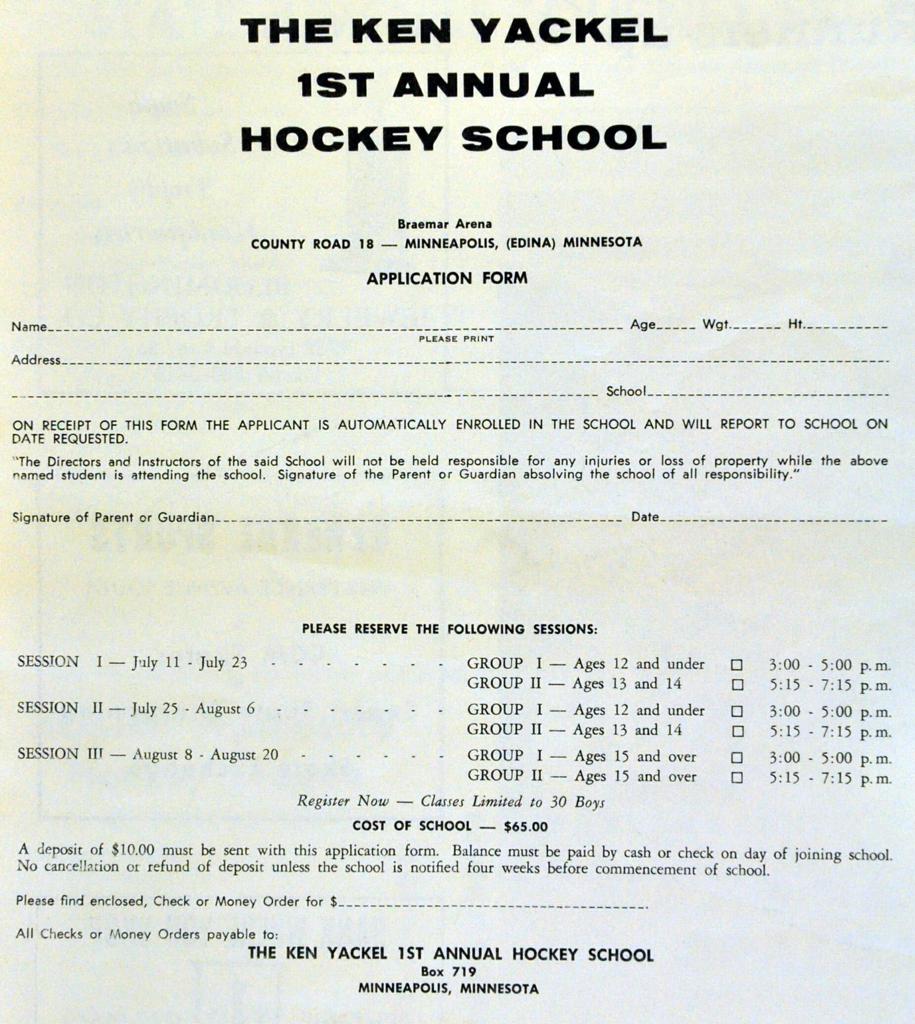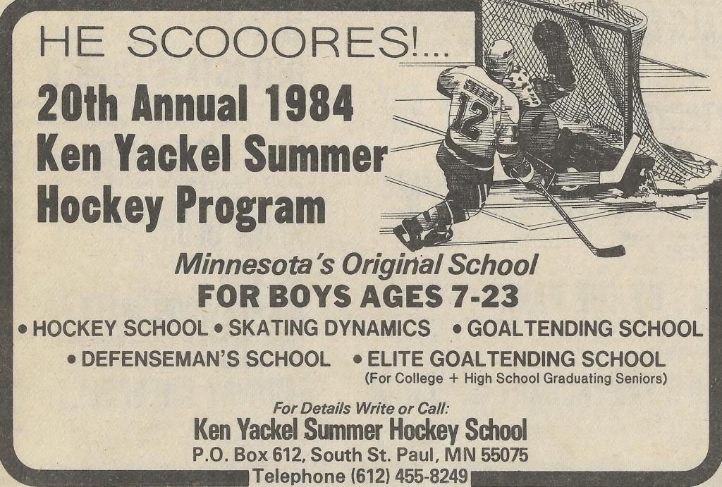In personal sit-down interviews conducted with John Mayasich, Lou Nanne and Lance Pitlick all answered similiarly when posing the following qustion; "What has been the biggest change in hockey since you played"?, the typical answer has always been - "More early specialization, hockey camps and equipment has drastically changed." Minnesota Hockey Camps typically offer a cirriculum of dryland training, class-room and several hours of on-ice drills with scrimmages. Ken Yackel's blue-prints in some fashion are emulated each and every summer across our great State of Minnesota. Ken Yackel West side arena in St. Paul was dedicated posthumously on June 22, 1993 in memory of this St. Paul legend.