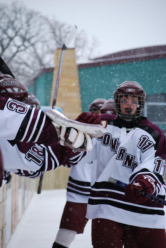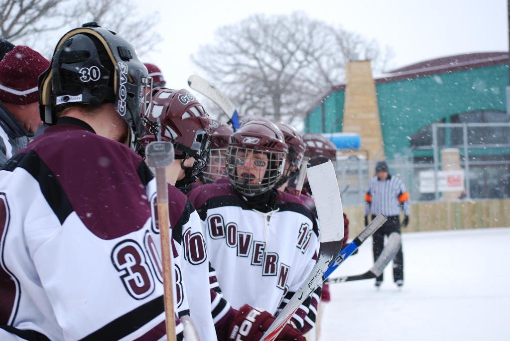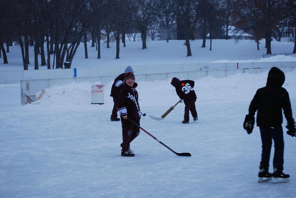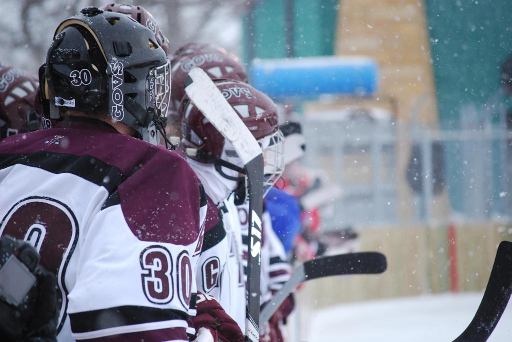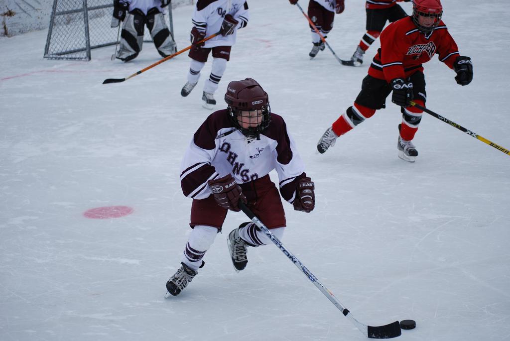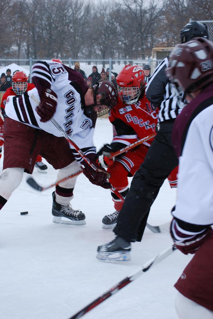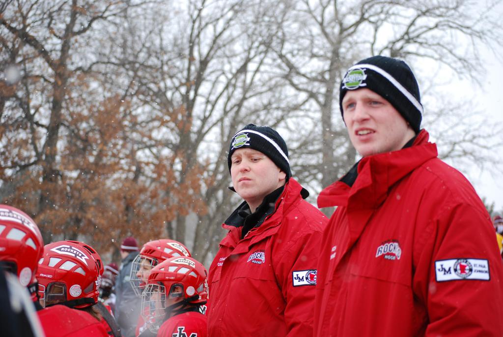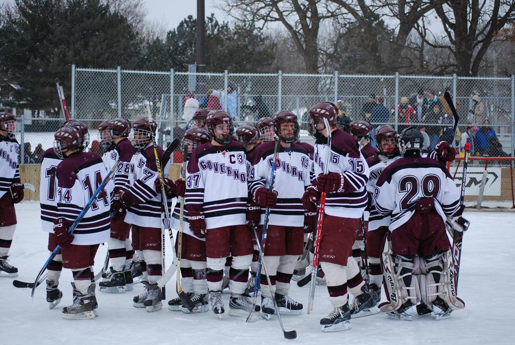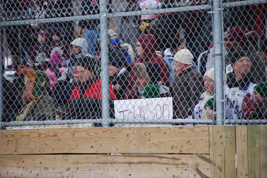 After northern Minnesota Baudette Bay was host to first x2 HDM, this was the perfect location for the Twin Cities first ever Hockey Day Minnesota, hosted at the beautiful outdoor refrigerated ice sheet within historic Phalen Park - where a young Herb Brooks learned to play hockey in eastside St. Paul. The beautiful warming house alongside the chain linked fence rink on the net ends added to the vintage nature of outdoor hockey, prior to the fully enclosed glass rinks now seen yearly at HDM. With light snow that fell during the games, and fans packing into the 'arena' for the marquee game featuring home-town St. Paul Johnson Governors vs. southern Minnesota Rochester John Marshall Rockets - it made for some amazing photos in stunning red (Rockets) and white/maroon (Governors) uniforms.