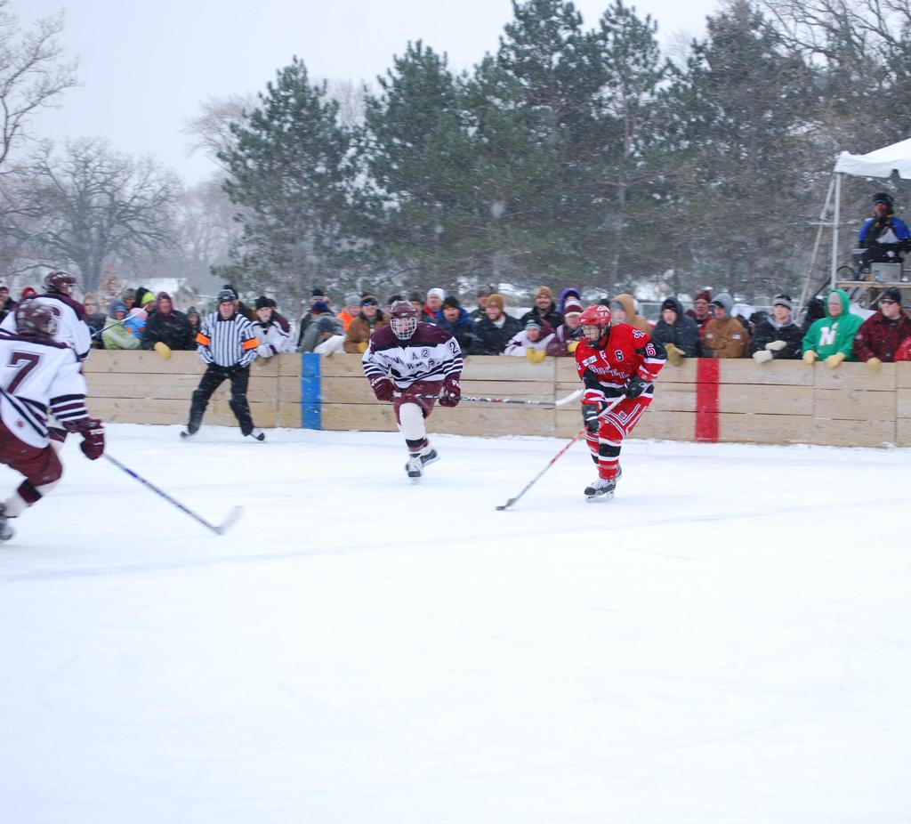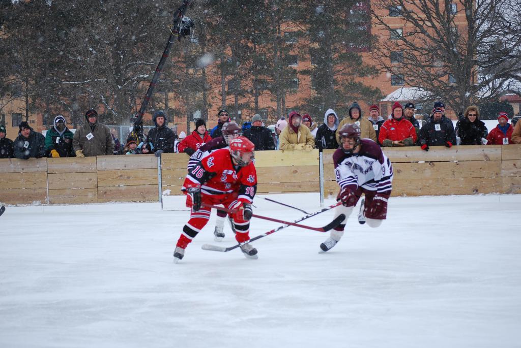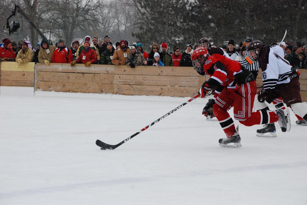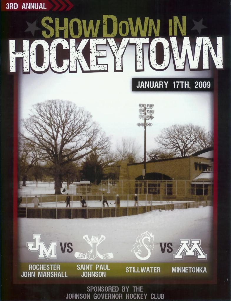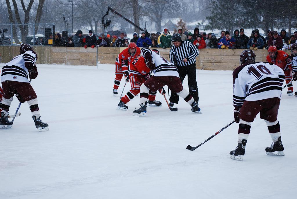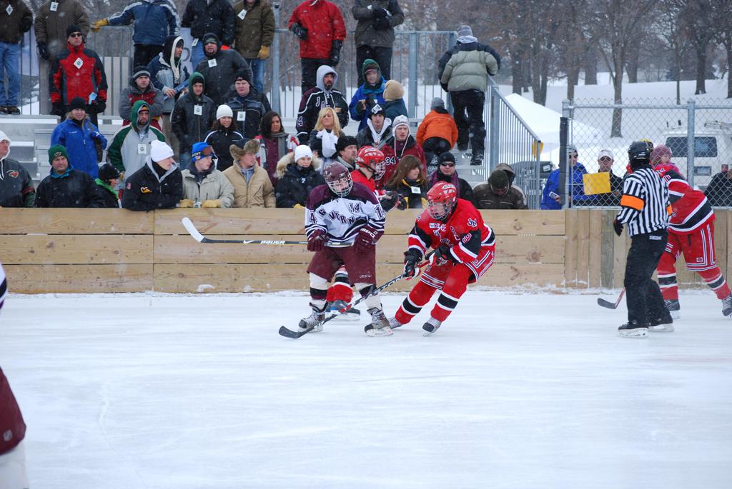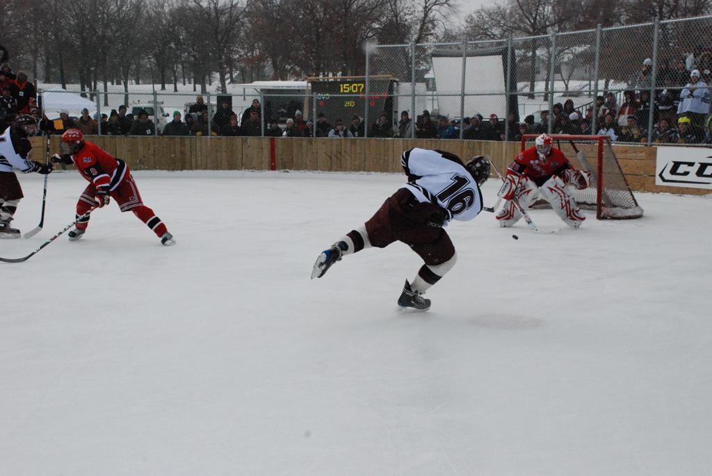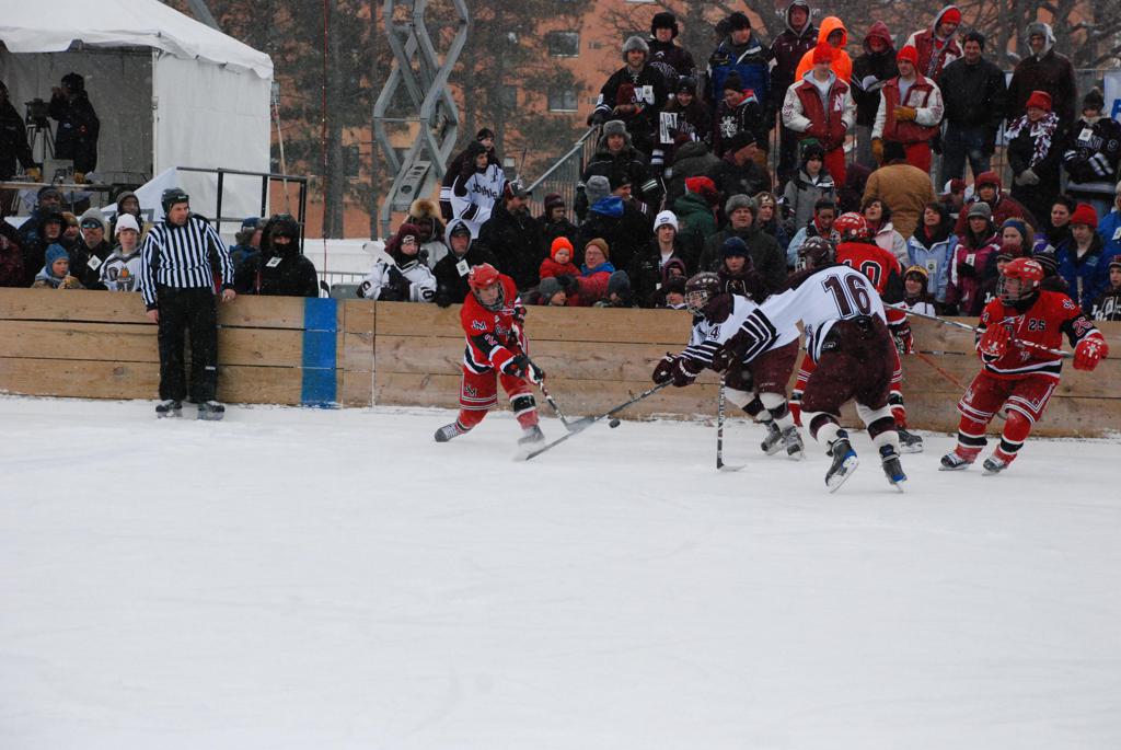 On January 17, 2009, Hockey Day Minnesota would find it’s way down to the Twin Cities for the first time. Held in historic Phalen Park where a young Herb Brooks would play as a youth in eastside of St. Paul, and billed as Showdown in Hockey Town it would feature 5 games once again, including 2 outdoor games at the High School ranks. Rochester John Marshall would fall to St. Paul Johnson by a 4-0 margin to kick off the day. In the marquee High School game, Duluth East would come down to play White Bear Lake at the Xcel Energy Center. Duluth East would put up 6 goals to WBL’s 3, winning comfortably indoors. While this game was being played, HDM brought in something new to the mix, although we wouldn’t see the game on TV until later. For the first time, HDM feature girls High School teams as Stillwater locked horns with Minnetonka, with Stillwater taking the victory with a 2-1 scorecard.