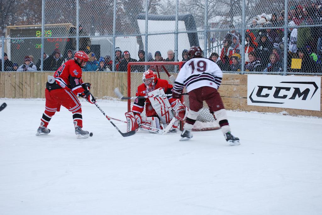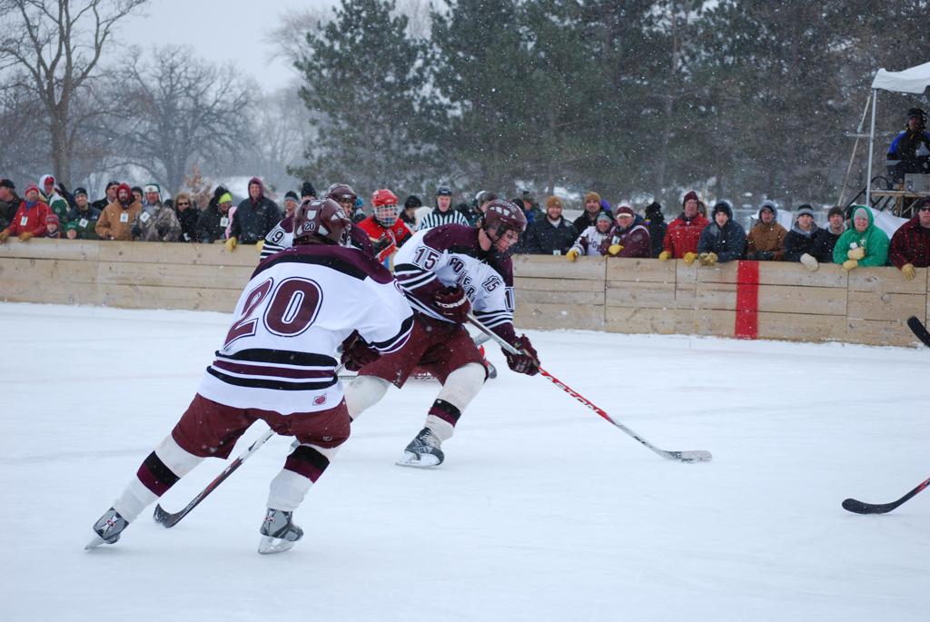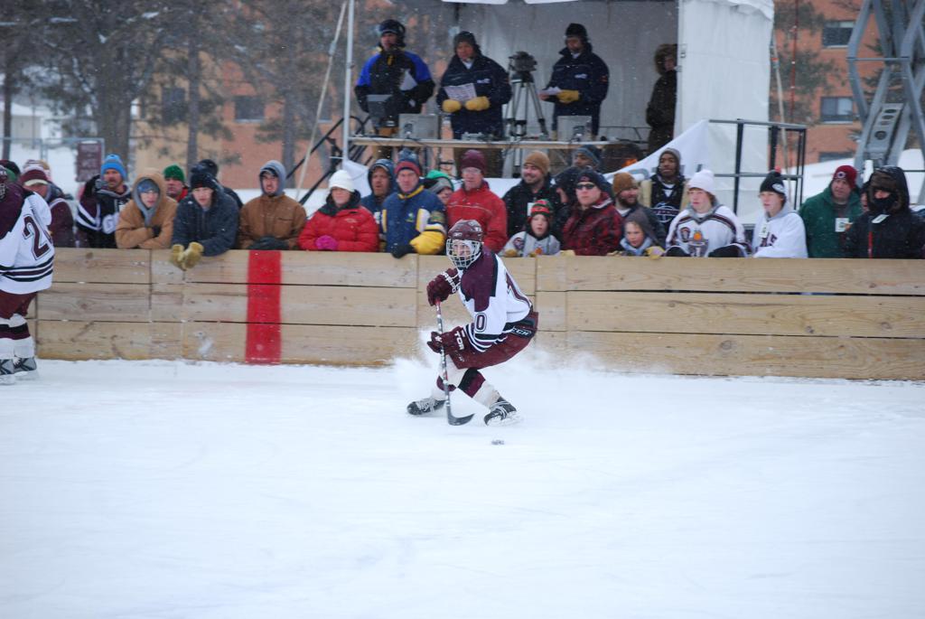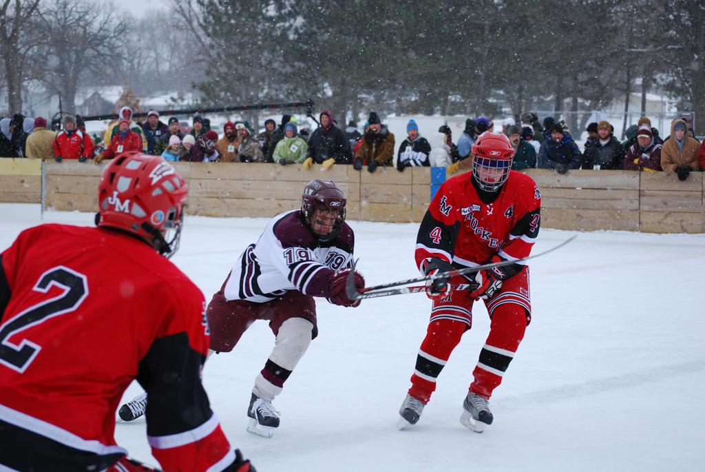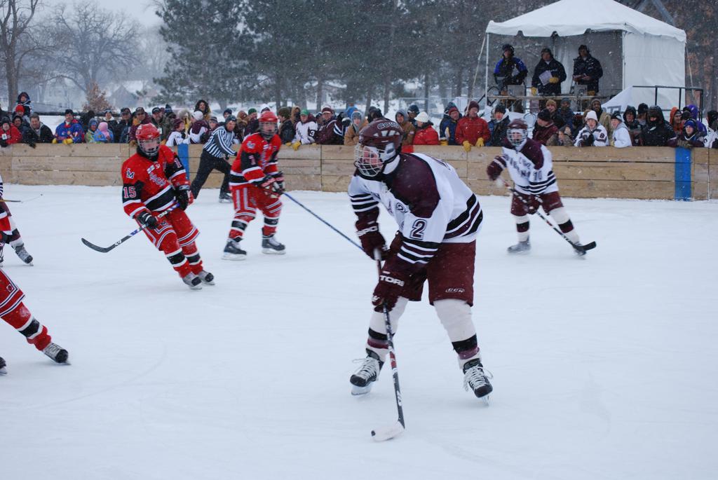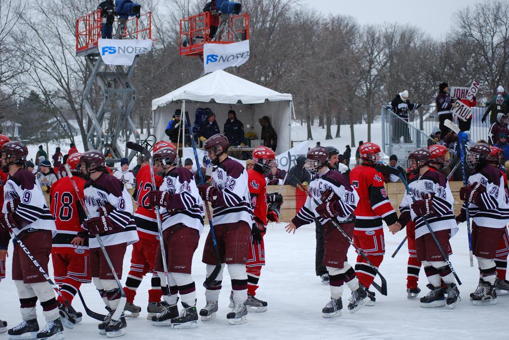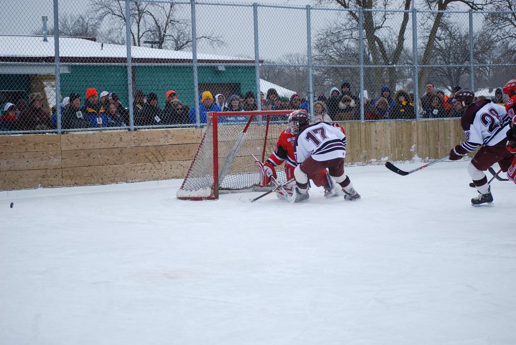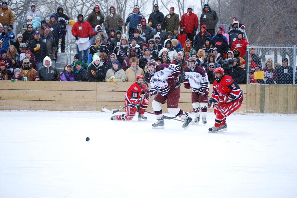 On January 17, 2009, Hockey Day Minnesota would find it’s way down to the Twin Cities for the first time. Held in historic Phalen Park where a young Herb Brooks would play as a youth in eastside of St. Paul, and billed as Showdown in Hockey Town it would feature 5 games once again, including 2 outdoor games at the High School ranks. Rochester John Marshall would fall to St. Paul Johnson by a 4-0 margin to kick off the day. In the marquee High School game, Duluth East would come down to play White Bear Lake at the Xcel Energy Center. Duluth East would put up 6 goals to WBL’s 3, winning comfortably indoors. While this game was being played, HDM brought in something new to the mix, although we wouldn’t see the game on TV until later. For the first time, HDM feature girls High School teams as Stillwater locked horns with Minnetonka, with Stillwater taking the victory with a 2-1 scorecard.