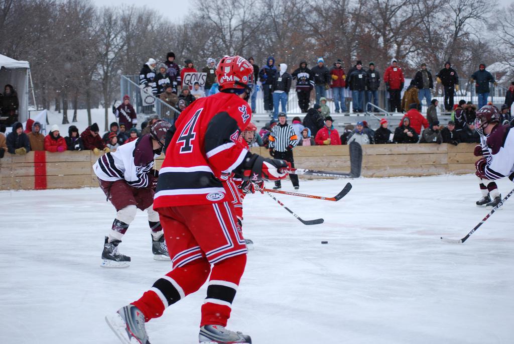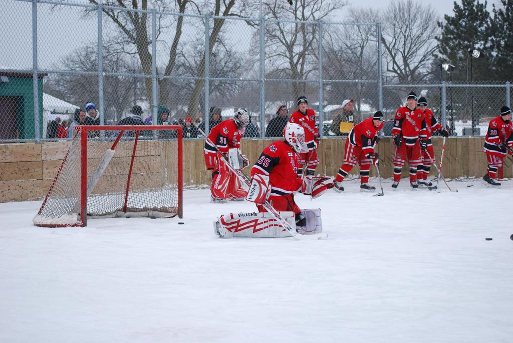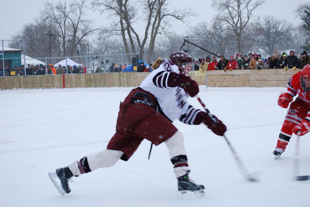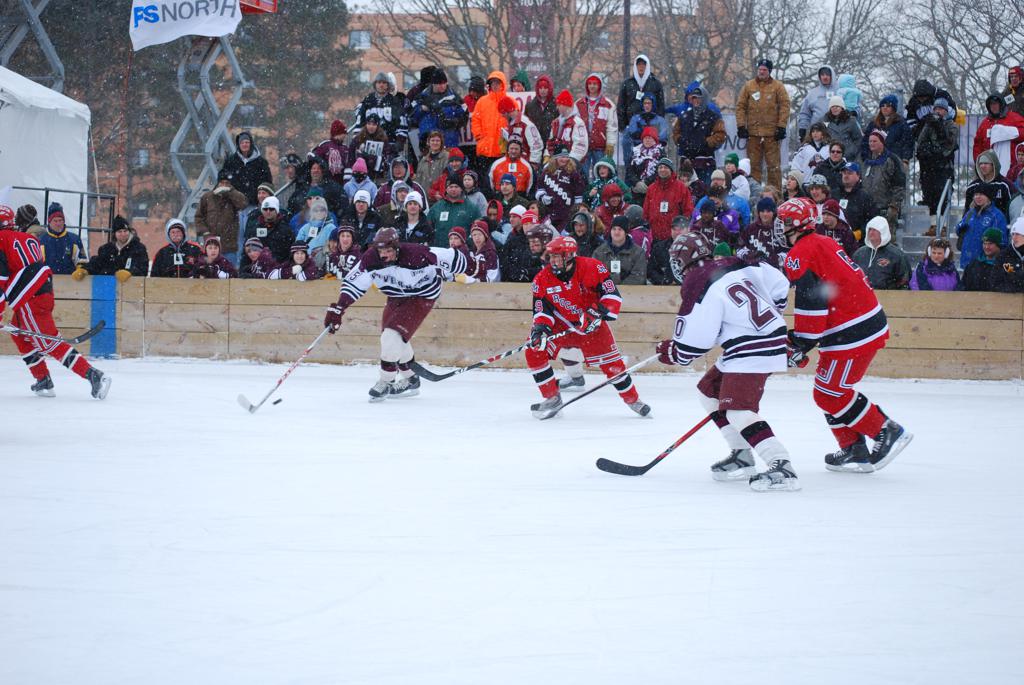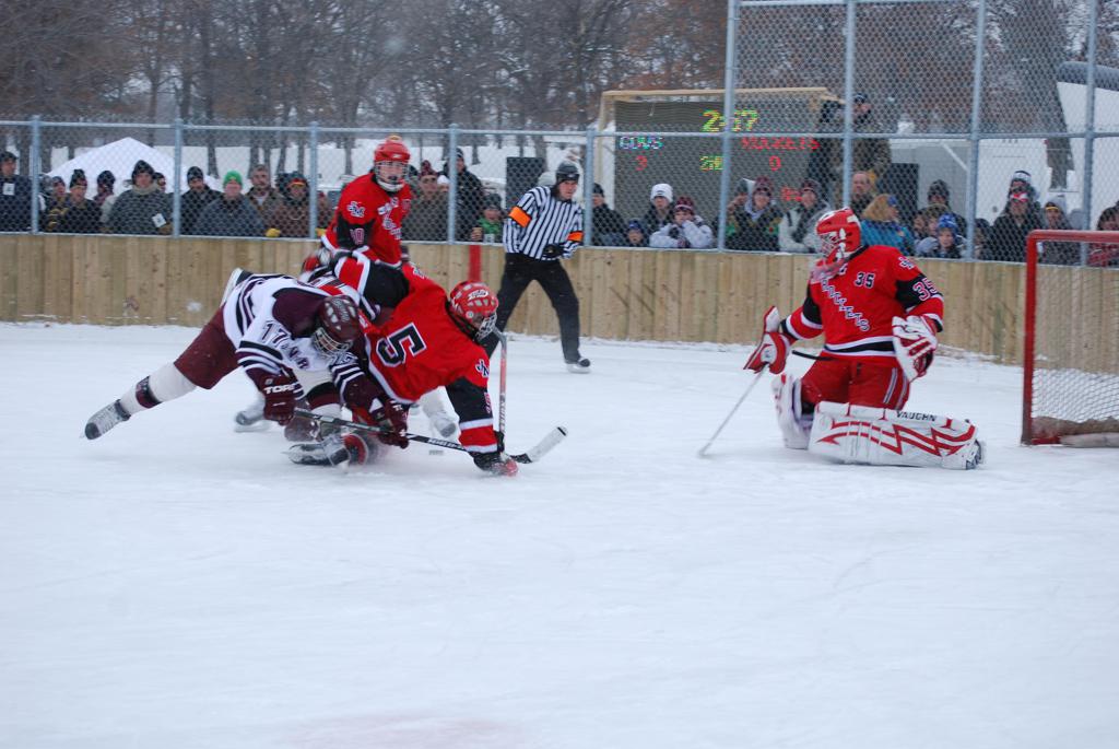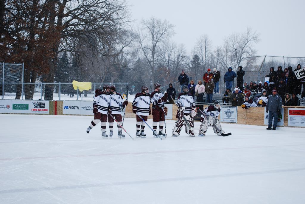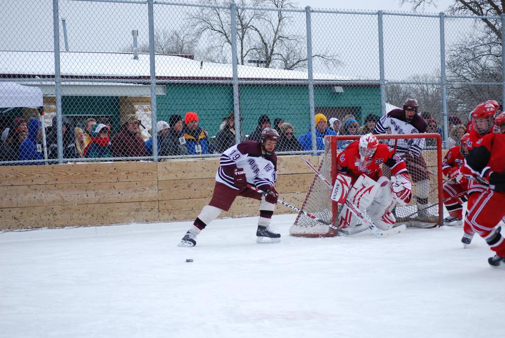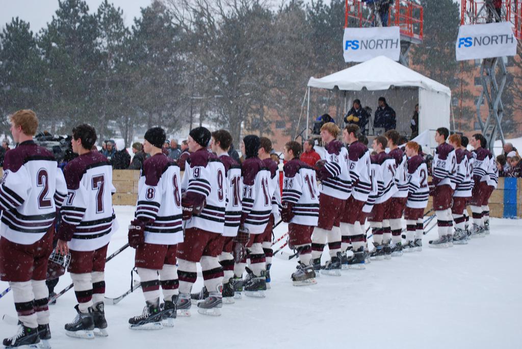 On January 17, 2009, Hockey Day Minnesota would find it’s way down to the Twin Cities for the first time. Held in historic Phalen Park where a young Herb Brooks would play as a youth in eastside of St. Paul, and billed as Showdown in Hockey Town it would feature 5 games once again, including 2 outdoor games at the High School ranks. Rochester John Marshall would fall to St. Paul Johnson by a 4-0 margin to kick off the day. In the marquee High School game, Duluth East would come down to play White Bear Lake at the Xcel Energy Center. Duluth East would put up 6 goals to WBL’s 3, winning comfortably indoors. While this game was being played, HDM brought in something new to the mix, although we wouldn’t see the game on TV until later. For the first time, HDM feature girls High School teams as Stillwater locked horns with Minnetonka, with Stillwater taking the victory with a 2-1 scorecard.