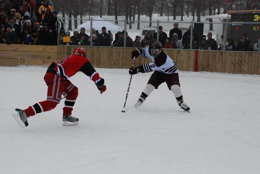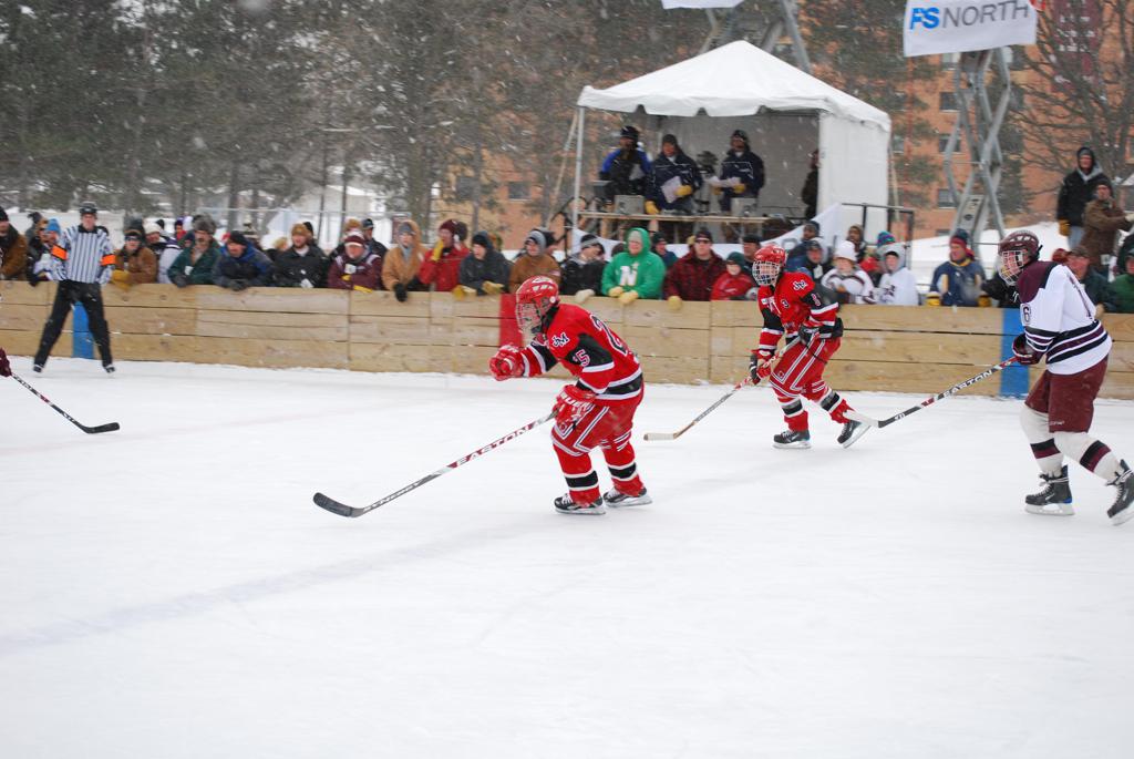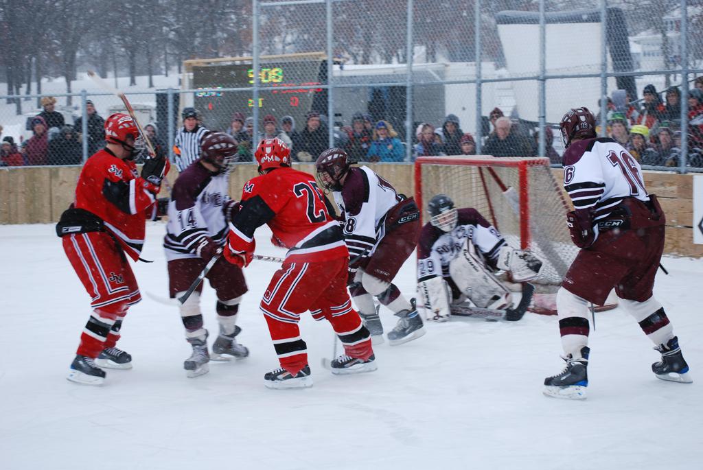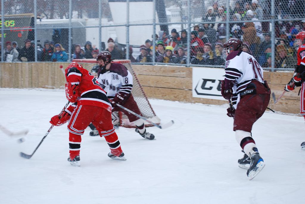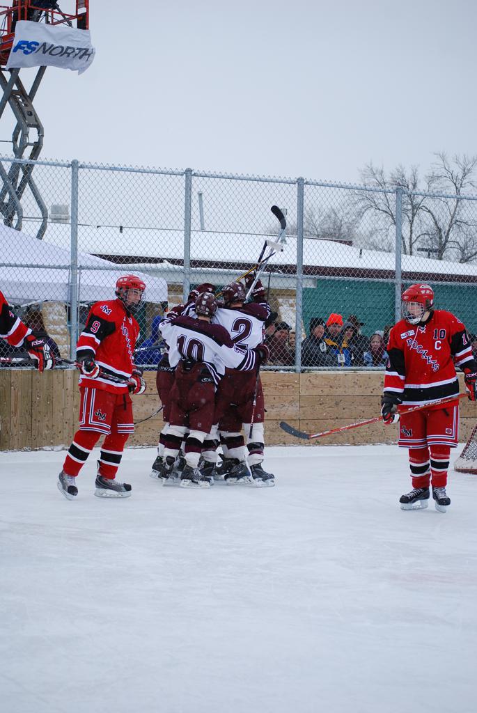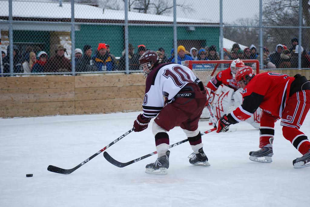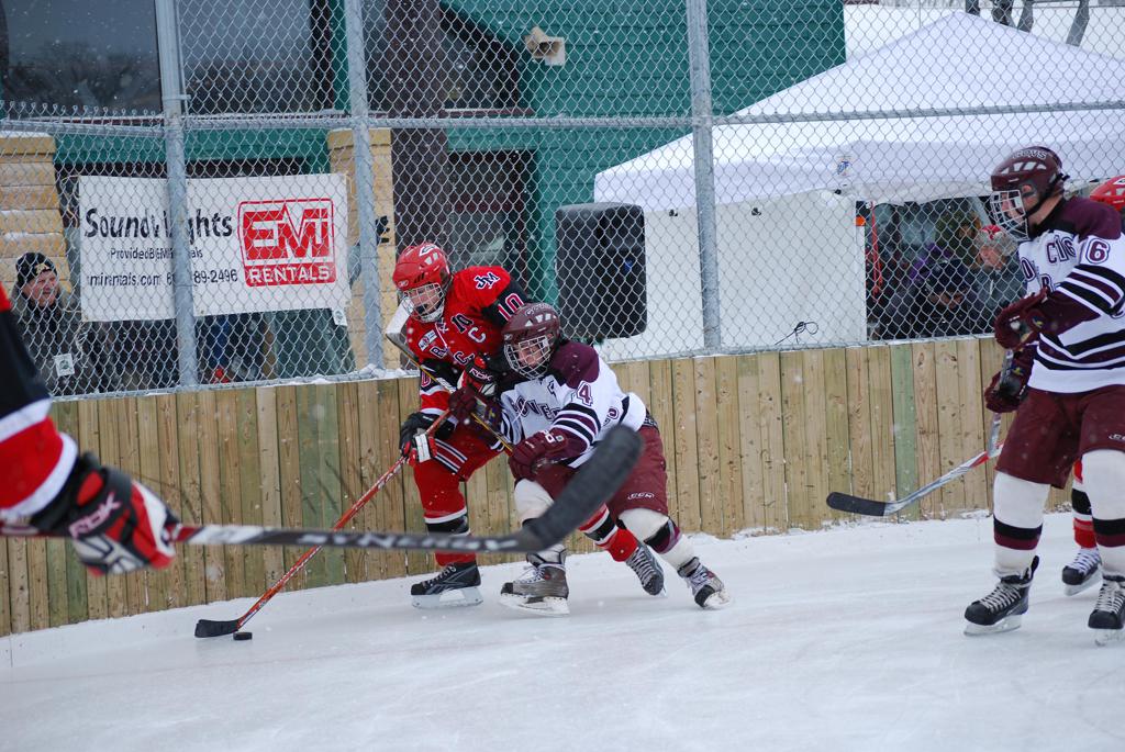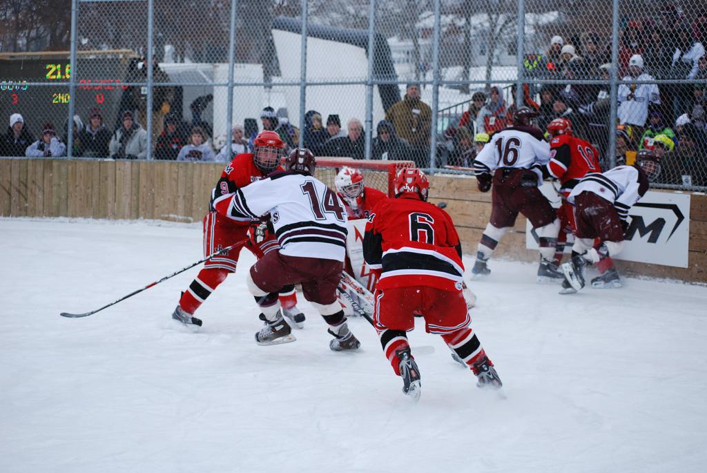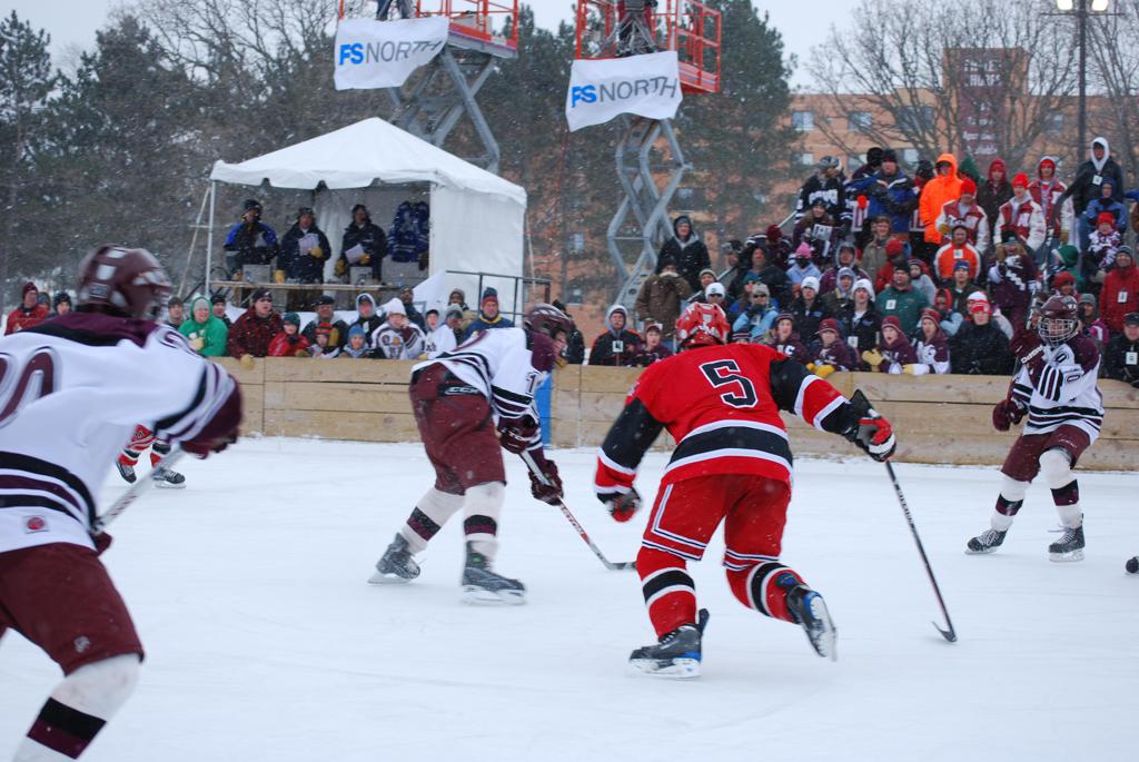 On January 17, 2009, Hockey Day Minnesota would find it’s way down to the Twin Cities for the first time. Held in historic Phalen Park where a young Herb Brooks would play as a youth in eastside of St. Paul, and billed as Showdown in Hockey Town it would feature 5 games once again, including 2 outdoor games at the High School ranks. Rochester John Marshall would fall to St. Paul Johnson by a 4-0 margin to kick off the day. In the marquee High School game, Duluth East would come down to play White Bear Lake at the Xcel Energy Center. Duluth East would put up 6 goals to WBL’s 3, winning comfortably indoors. While this game was being played, HDM brought in something new to the mix, although we wouldn’t see the game on TV until later. For the first time, HDM feature girls High School teams as Stillwater locked horns with Minnetonka, with Stillwater taking the victory with a 2-1 scorecard.