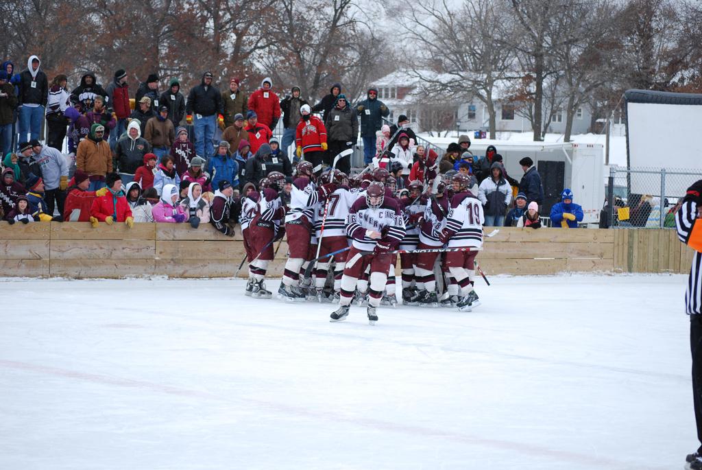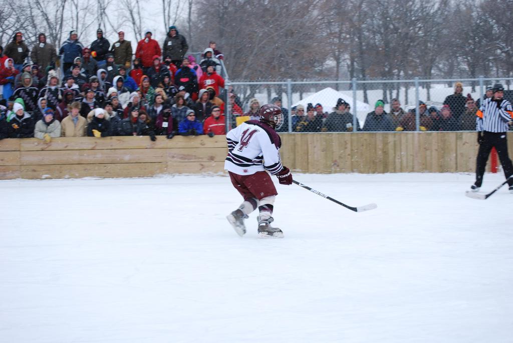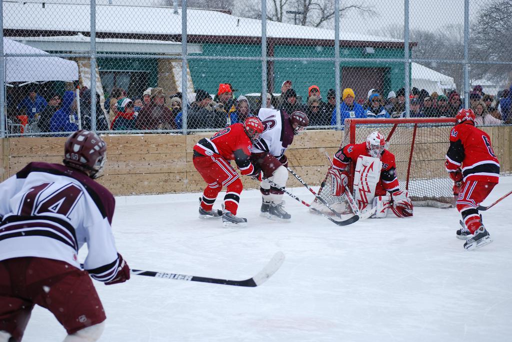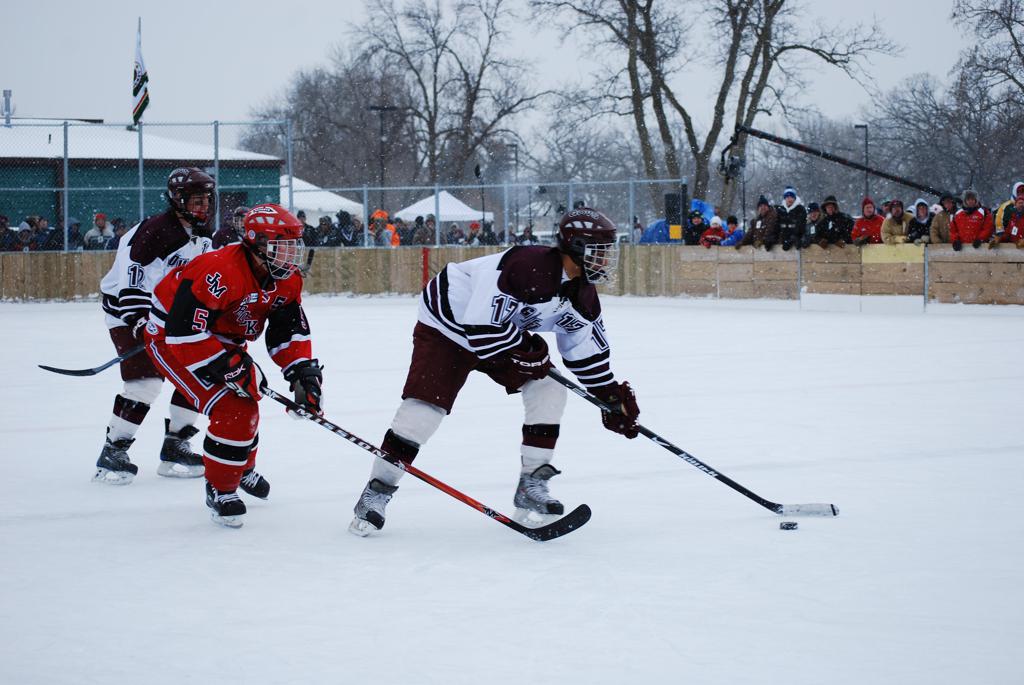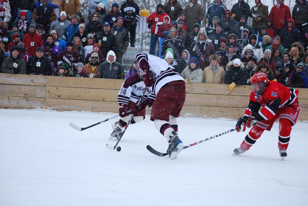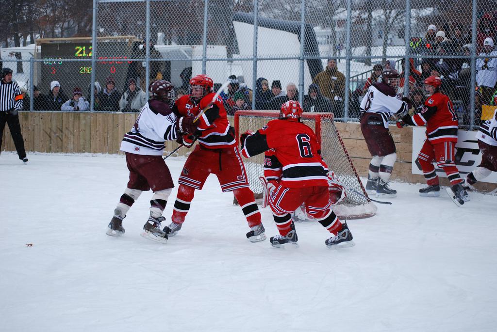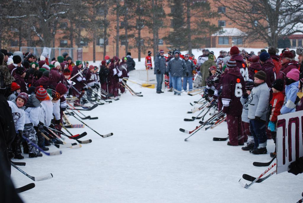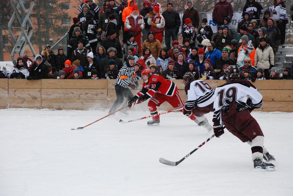 On January 17, 2009, Hockey Day Minnesota would find it’s way down to the Twin Cities for the first time. Held in historic Phalen Park where a young Herb Brooks would play as a youth in eastside of St. Paul, and billed as Showdown in Hockey Town it would feature 5 games once again, including 2 outdoor games at the High School ranks. Rochester John Marshall would fall to St. Paul Johnson by a 4-0 margin to kick off the day. In the marquee High School game, Duluth East would come down to play White Bear Lake at the Xcel Energy Center. Duluth East would put up 6 goals to WBL’s 3, winning comfortably indoors. While this game was being played, HDM brought in something new to the mix, although we wouldn’t see the game on TV until later. For the first time, HDM feature girls High School teams as Stillwater locked horns with Minnetonka, with Stillwater taking the victory with a 2-1 scorecard.