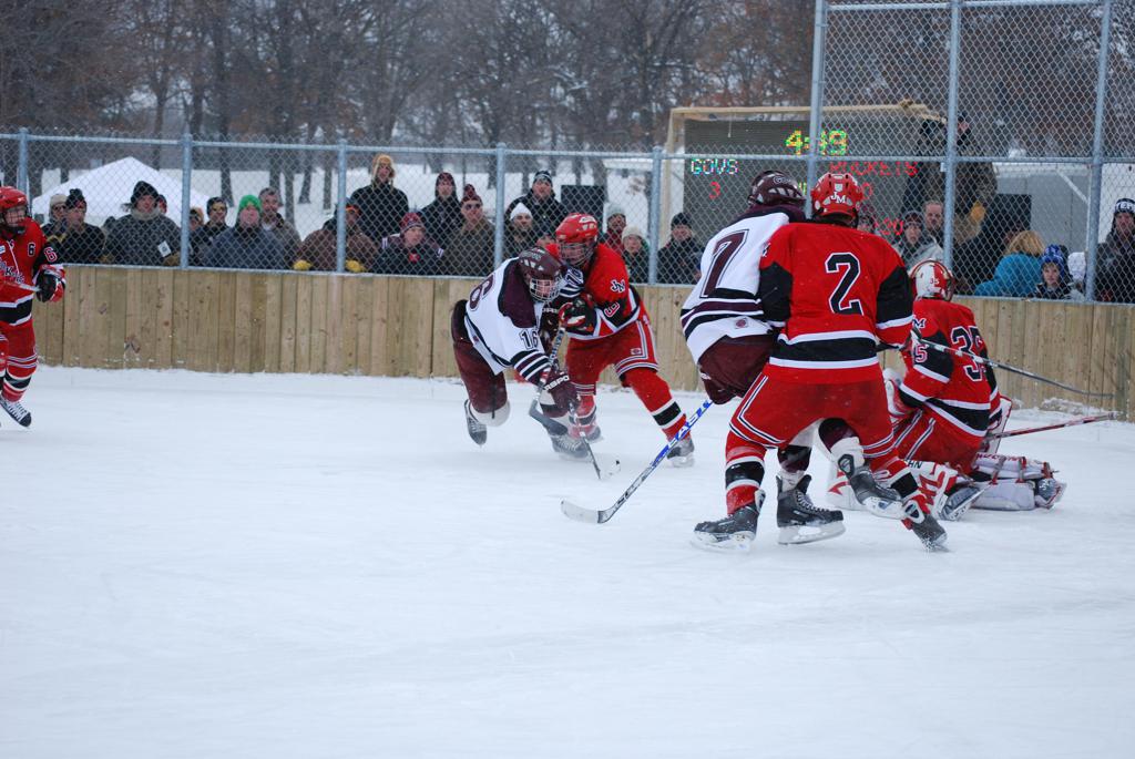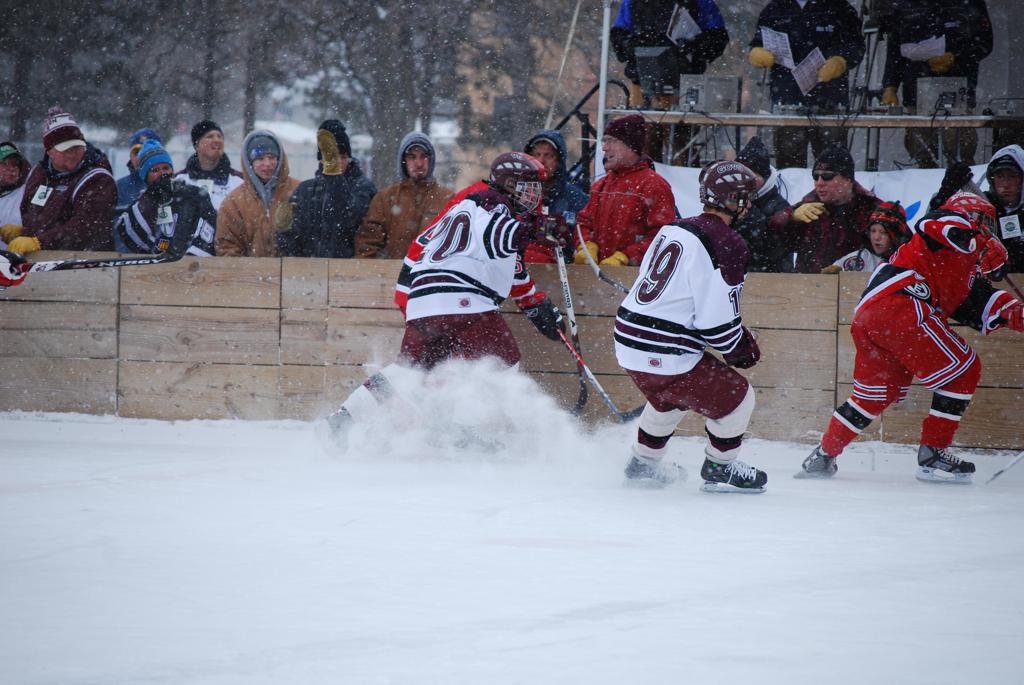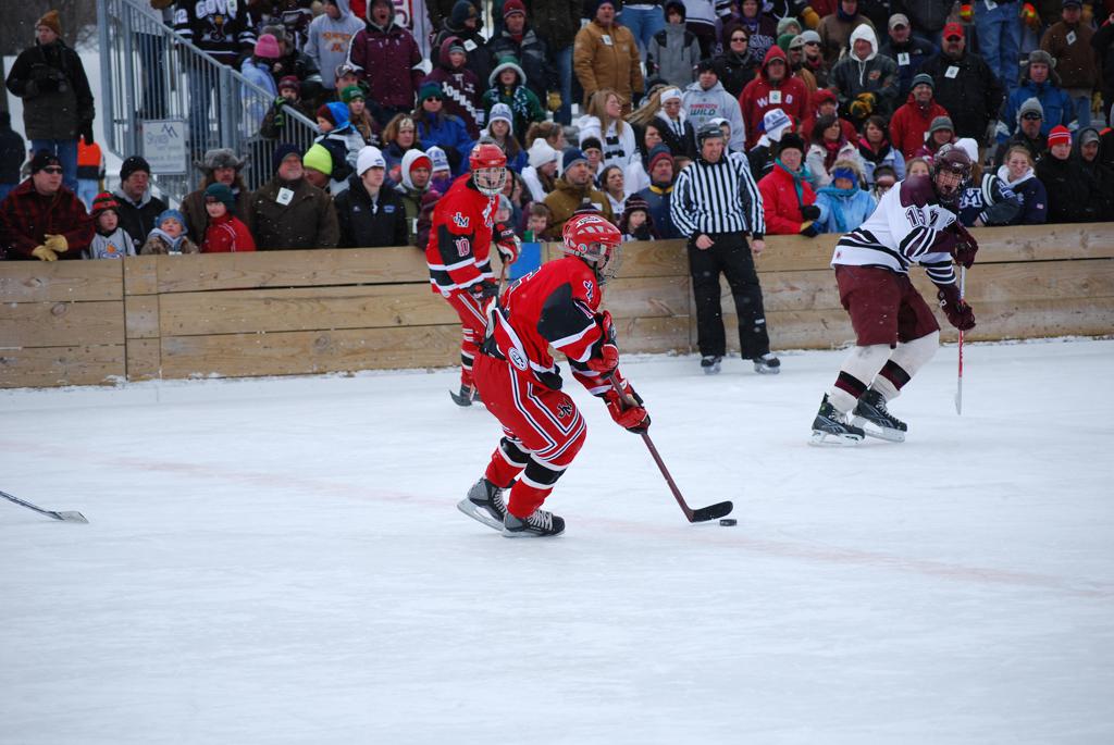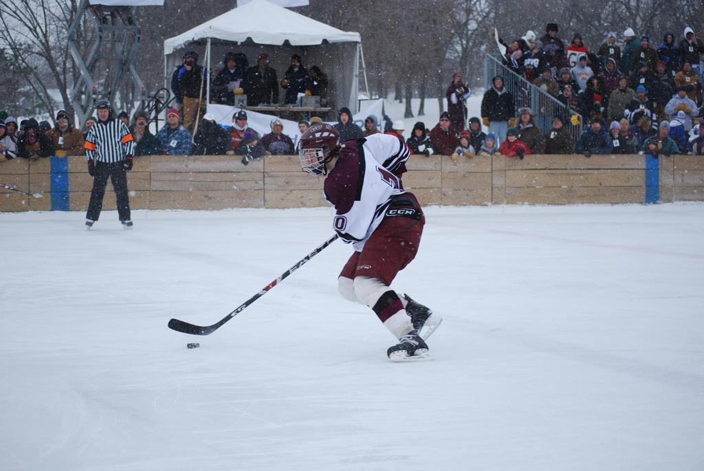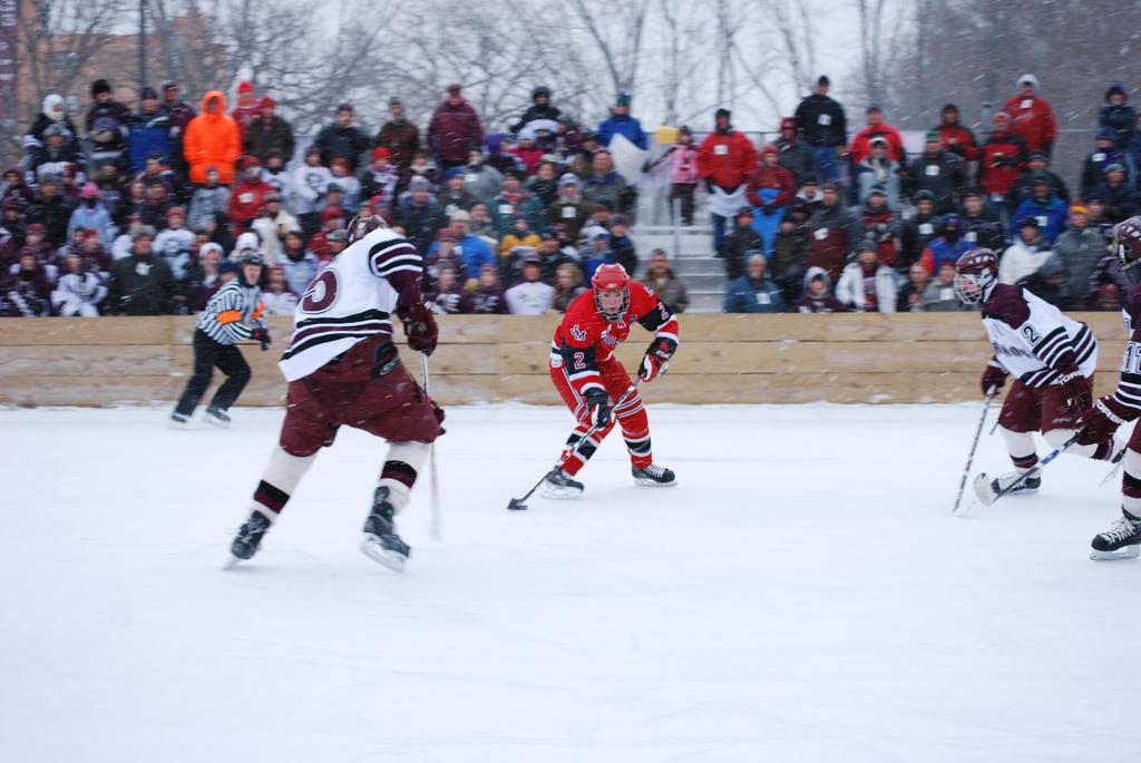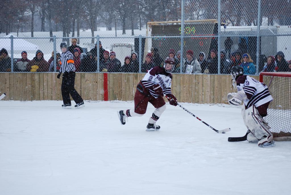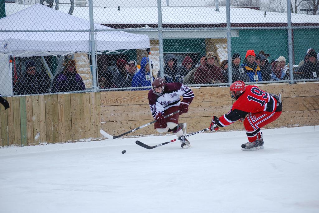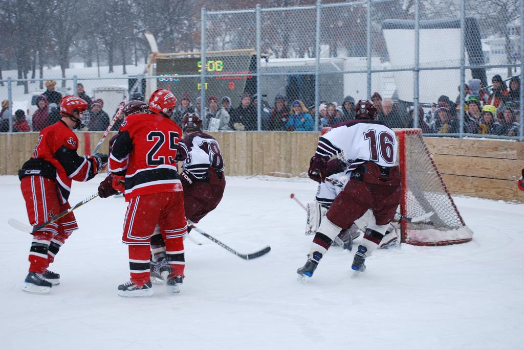 On January 17, 2009, Hockey Day Minnesota would find it’s way down to the Twin Cities for the first time. Held in historic Phalen Park where a young Herb Brooks would play as a youth in eastside of St. Paul, and billed as Showdown in Hockey Town it would feature 5 games once again, including 2 outdoor games at the High School ranks. Rochester John Marshall would fall to St. Paul Johnson by a 4-0 margin to kick off the day. In the marquee High School game, Duluth East would come down to play White Bear Lake at the Xcel Energy Center. Duluth East would put up 6 goals to WBL’s 3, winning comfortably indoors. While this game was being played, HDM brought in something new to the mix, although we wouldn’t see the game on TV until later. For the first time, HDM feature girls High School teams as Stillwater locked horns with Minnetonka, with Stillwater taking the victory with a 2-1 scorecard.