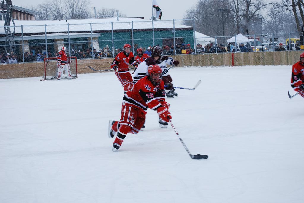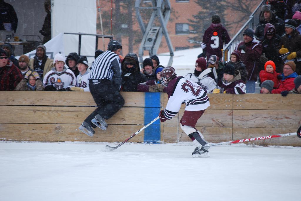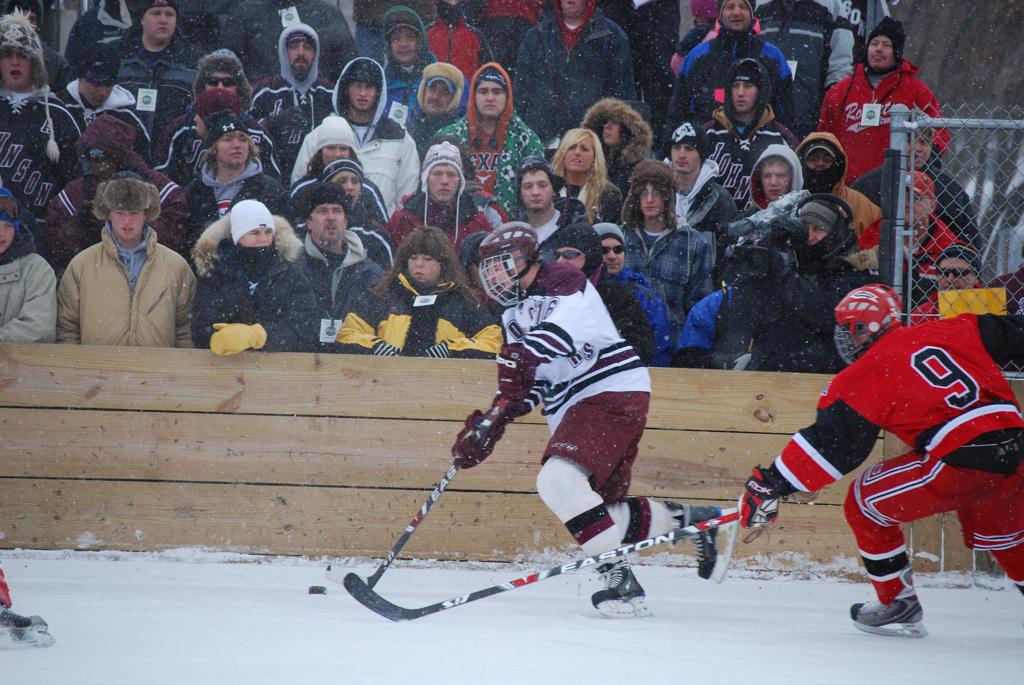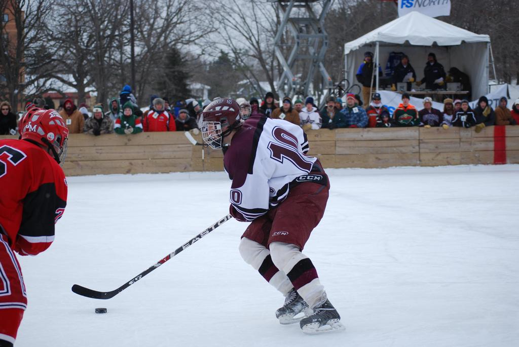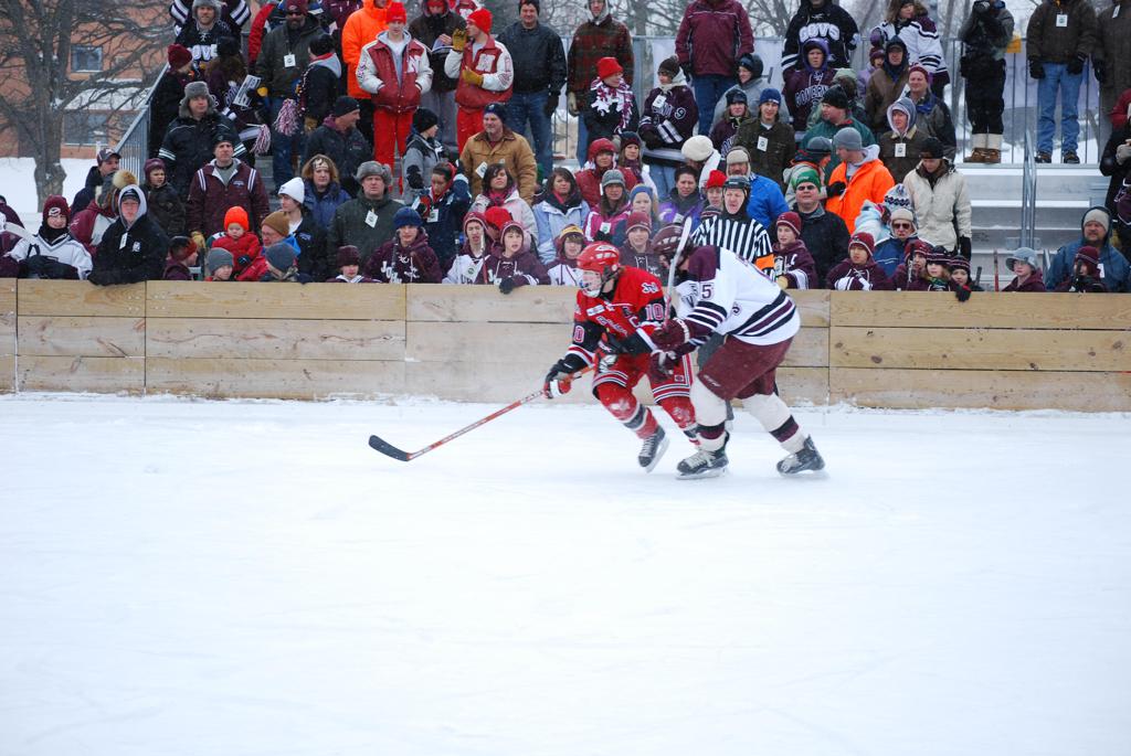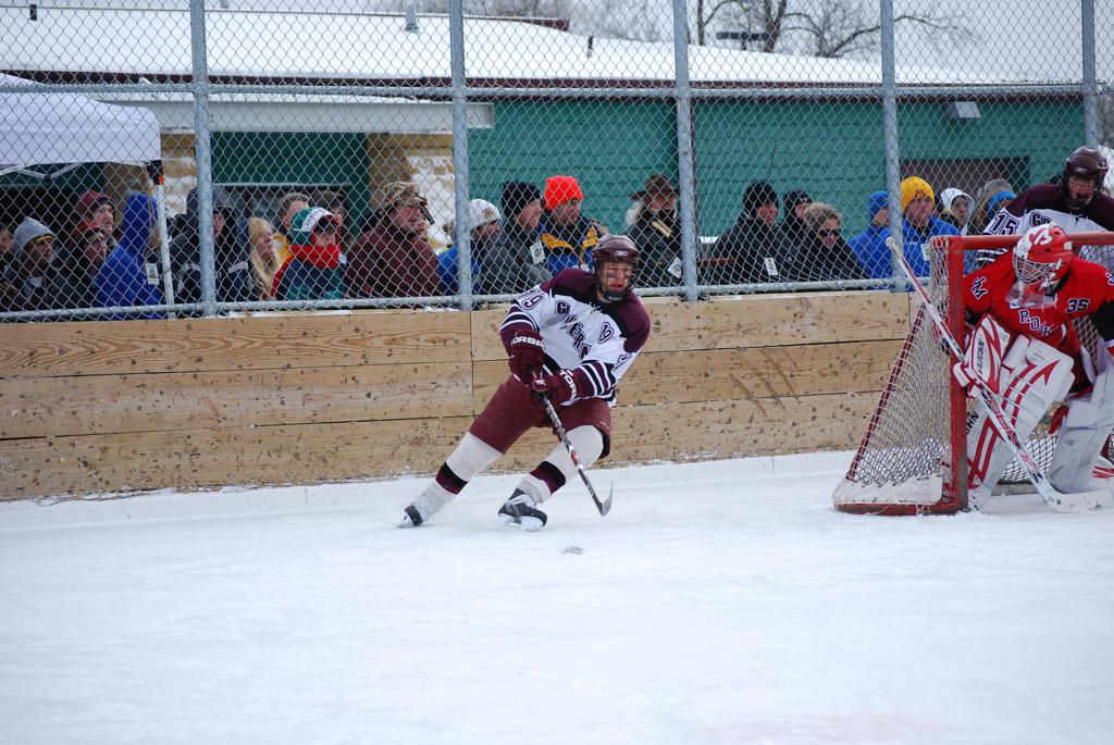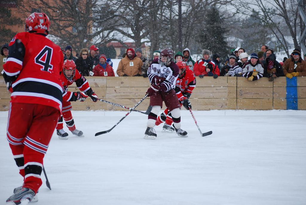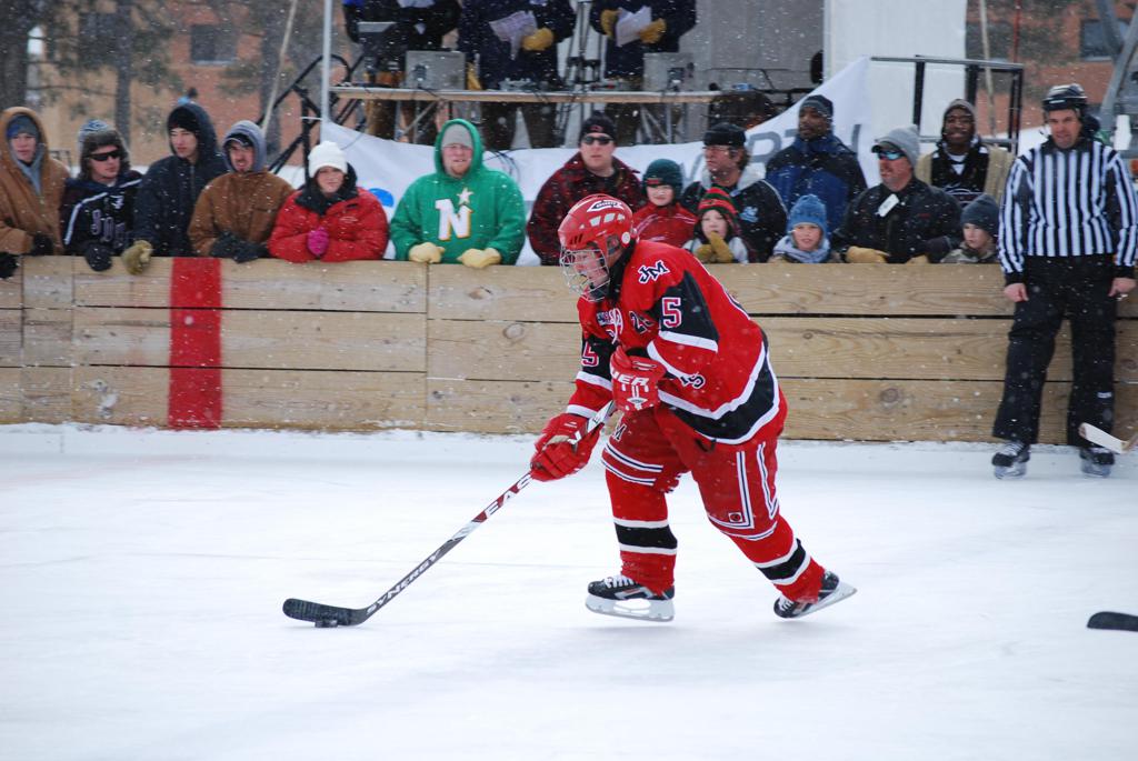 On January 17, 2009, Hockey Day Minnesota would find it’s way down to the Twin Cities for the first time. Held in historic Phalen Park where a young Herb Brooks would play as a youth in eastside of St. Paul, and billed as Showdown in Hockey Town it would feature 5 games once again, including 2 outdoor games at the High School ranks. Rochester John Marshall would fall to St. Paul Johnson by a 4-0 margin to kick off the day. In the marquee High School game, Duluth East would come down to play White Bear Lake at the Xcel Energy Center. Duluth East would put up 6 goals to WBL’s 3, winning comfortably indoors. While this game was being played, HDM brought in something new to the mix, although we wouldn’t see the game on TV until later. For the first time, HDM feature girls High School teams as Stillwater locked horns with Minnetonka, with Stillwater taking the victory with a 2-1 scorecard.