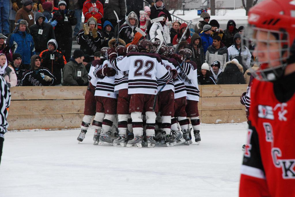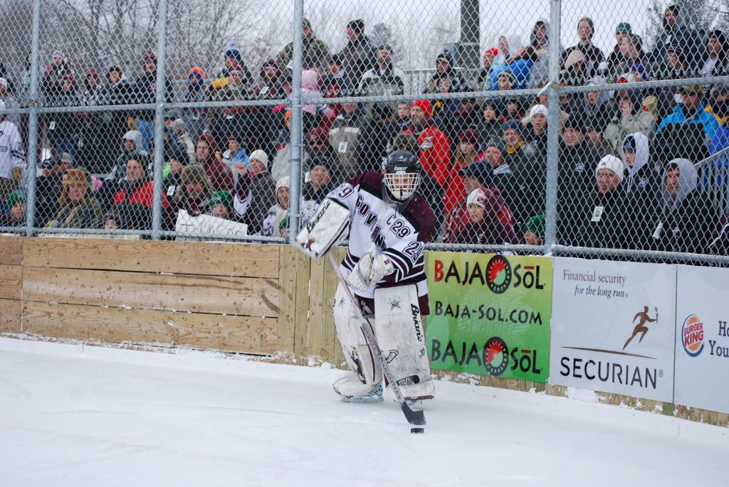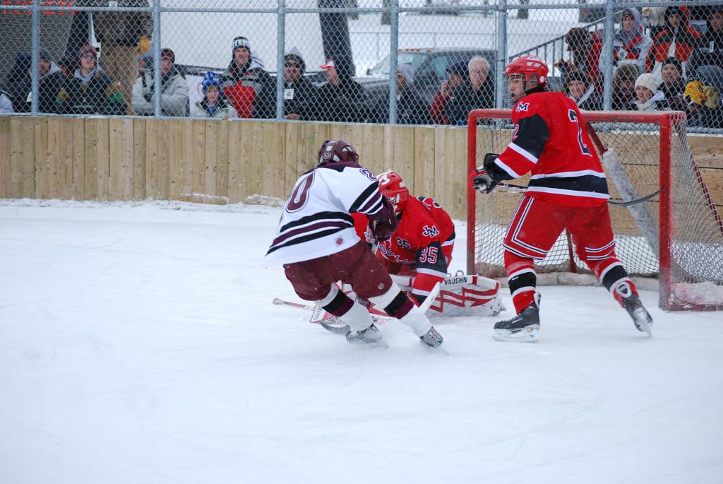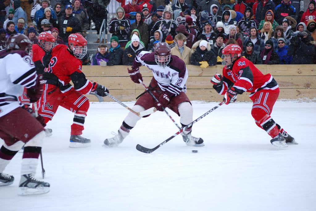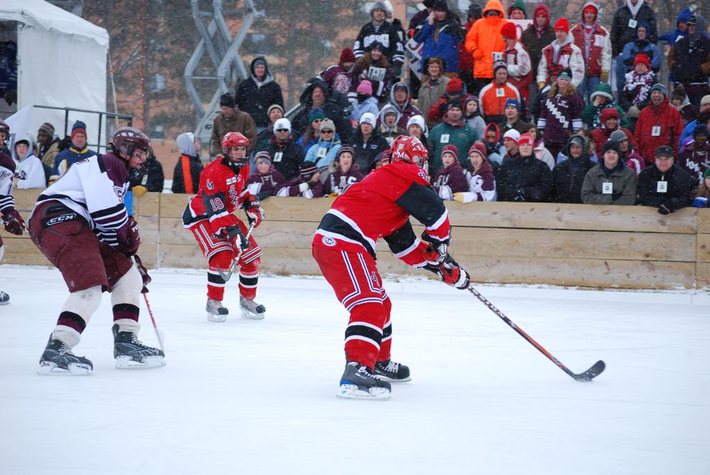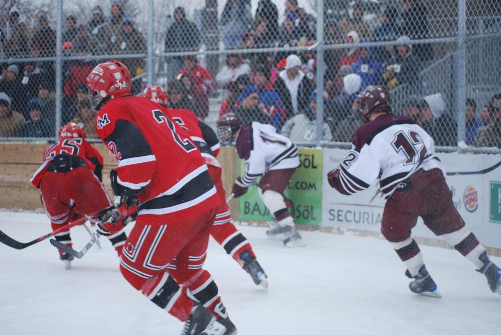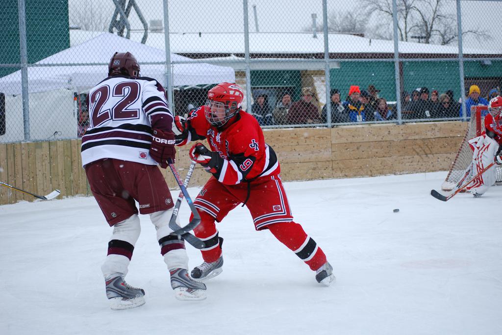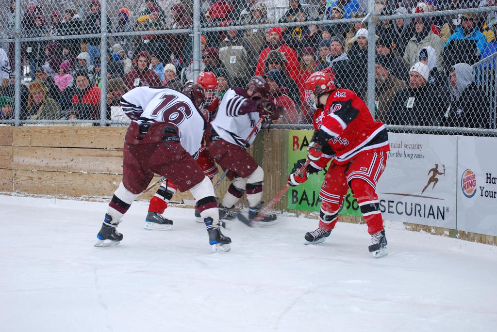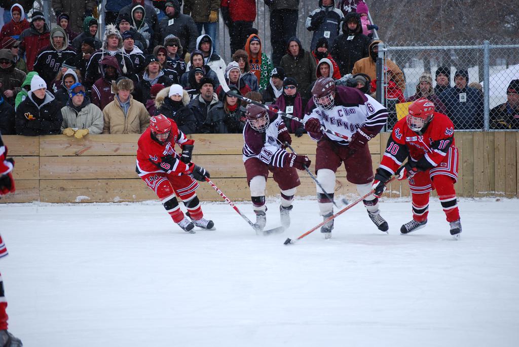 On January 17, 2009, Hockey Day Minnesota would find it’s way down to the Twin Cities for the first time. Held in historic Phalen Park where a young Herb Brooks would play as a youth in eastside of St. Paul, and billed as Showdown in Hockey Town it would feature 5 games once again, including 2 outdoor games at the High School ranks. Rochester John Marshall would fall to St. Paul Johnson by a 4-0 margin to kick off the day. In the marquee High School game, Duluth East would come down to play White Bear Lake at the Xcel Energy Center. Duluth East would put up 6 goals to WBL’s 3, winning comfortably indoors. While this game was being played, HDM brought in something new to the mix, although we wouldn’t see the game on TV until later. For the first time, HDM feature girls High School teams as Stillwater locked horns with Minnetonka, with Stillwater taking the victory with a 2-1 scorecard.