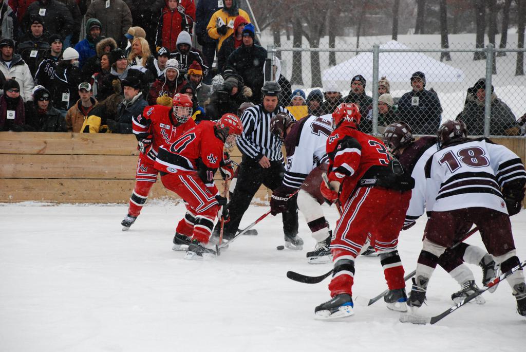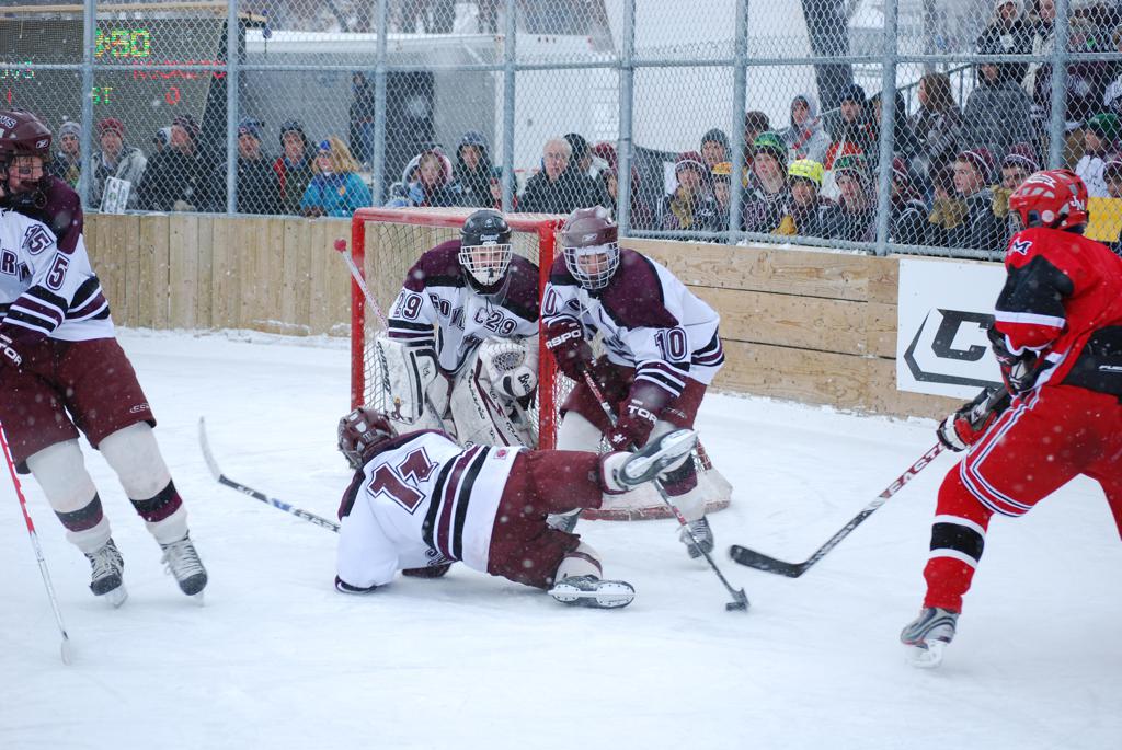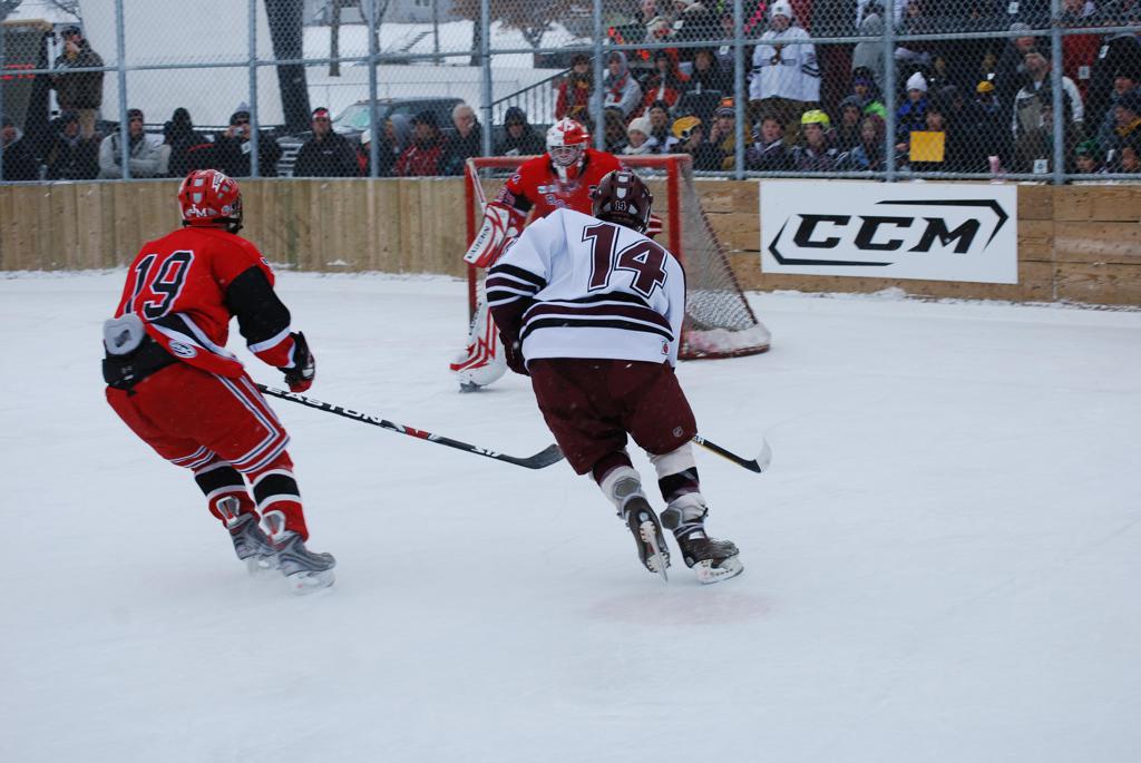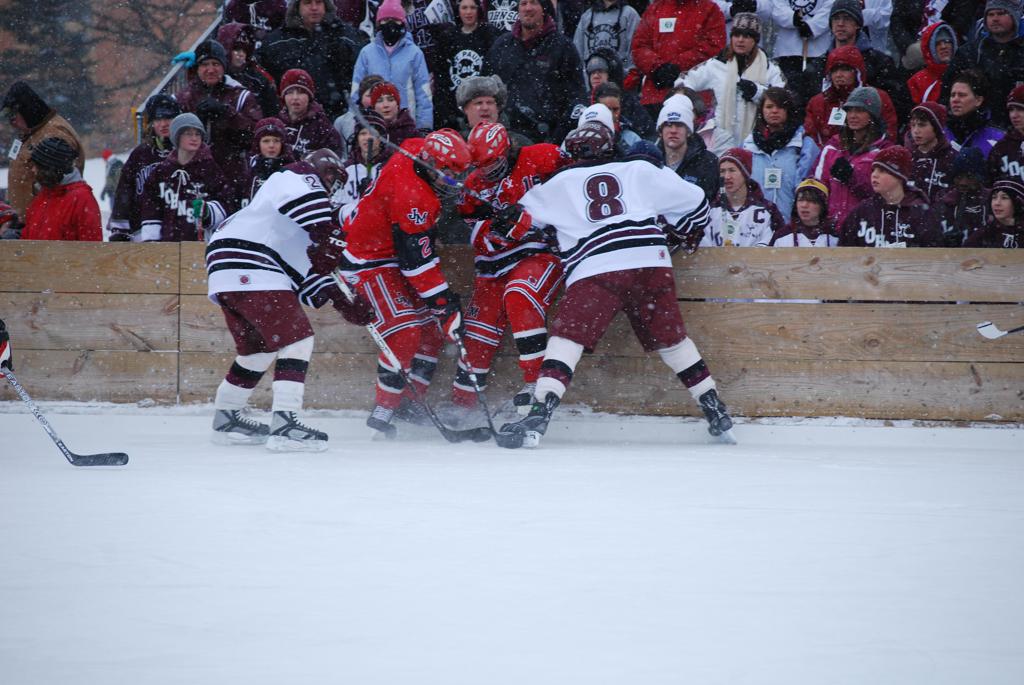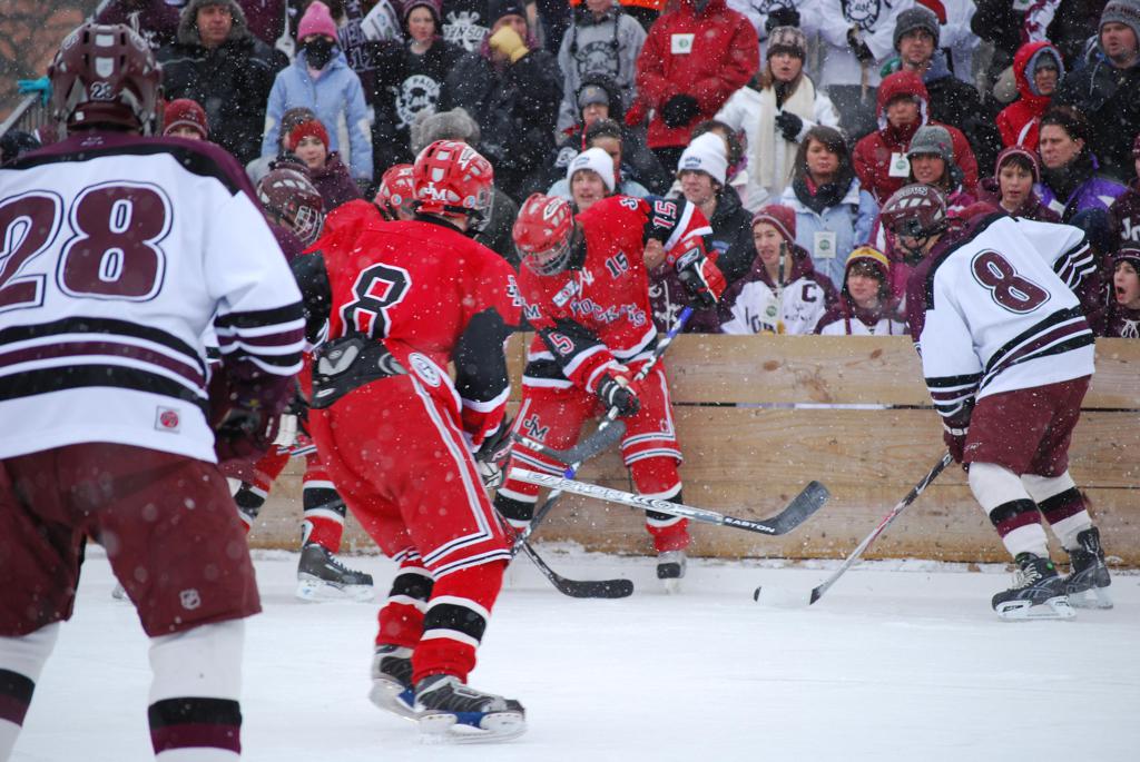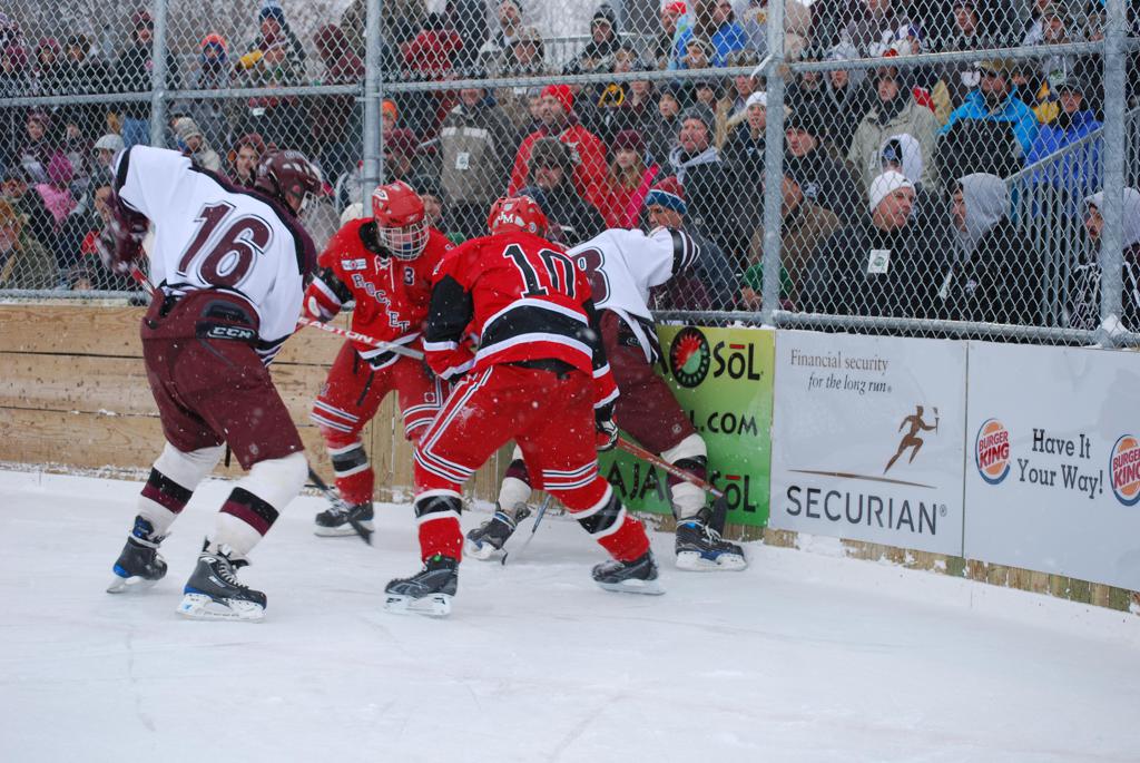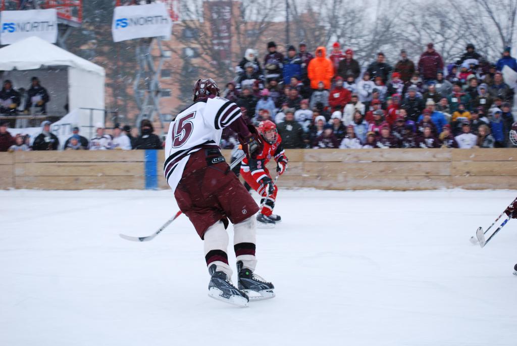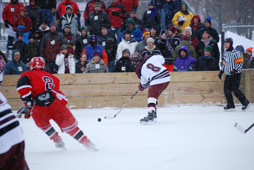 On January 17, 2009, Hockey Day Minnesota would find it’s way down to the Twin Cities for the first time. Held in historic Phalen Park where a young Herb Brooks would play as a youth in eastside of St. Paul, and billed as Showdown in Hockey Town it would feature 5 games once again, including 2 outdoor games at the High School ranks. Rochester John Marshall would fall to St. Paul Johnson by a 4-0 margin to kick off the day. In the marquee High School game, Duluth East would come down to play White Bear Lake at the Xcel Energy Center. Duluth East would put up 6 goals to WBL’s 3, winning comfortably indoors. While this game was being played, HDM brought in something new to the mix, although we wouldn’t see the game on TV until later. For the first time, HDM feature girls High School teams as Stillwater locked horns with Minnetonka, with Stillwater taking the victory with a 2-1 scorecard.