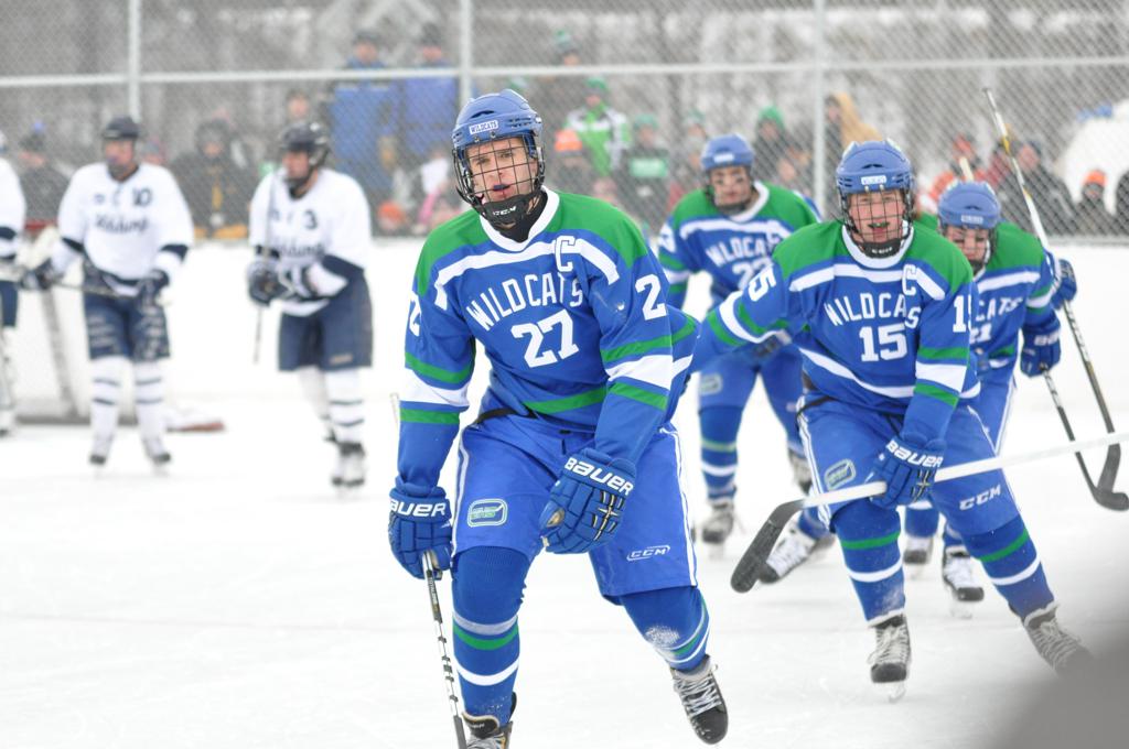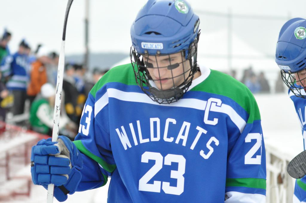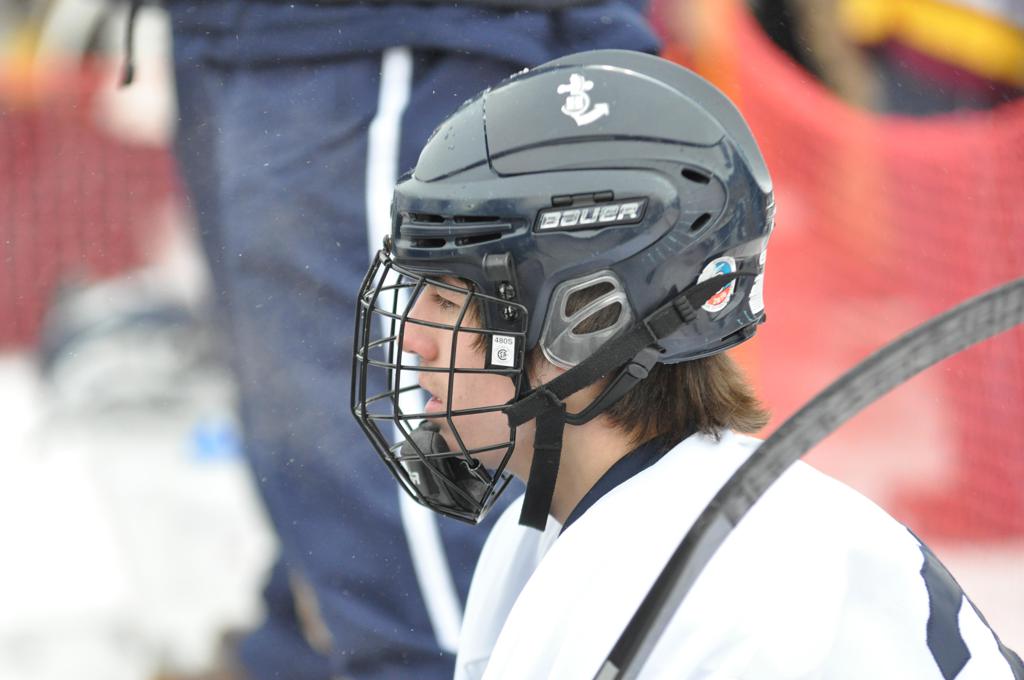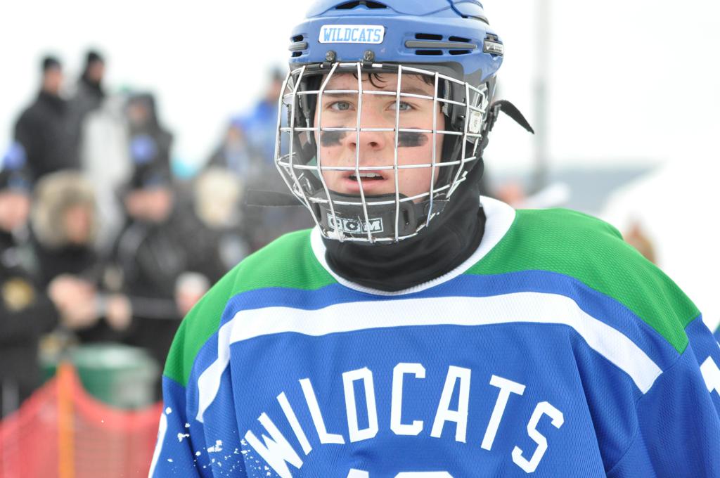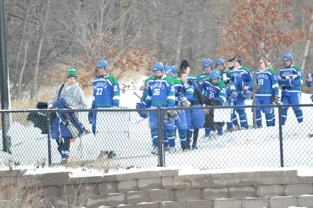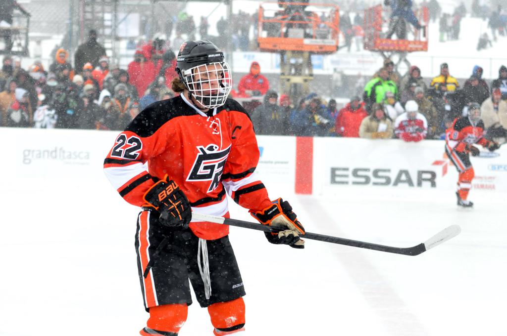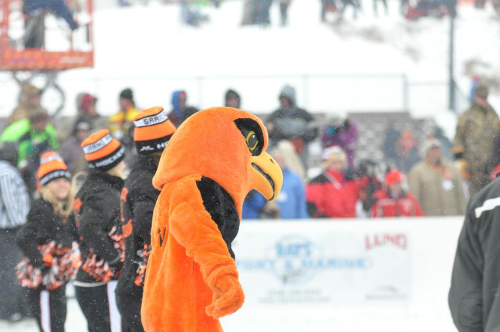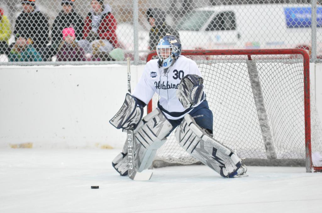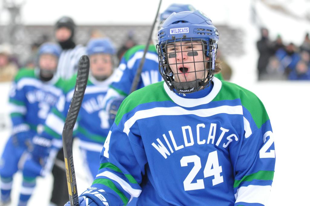 The day would start off with the girls Grand Rapids-Greenway team skunking Hibbing-Chisholm 6-0. Again, this game would not be seen on TV until much later in the evening. It was not a good day for Hibbing-Chisholm, as their boys team fell by a 9-2 margin to Eagan. It would be a good day for Grand Rapids, as the GR boys team was able to get past Benilde-St. Margaret’s with a 3-2 overtime victory. Jack Jablonski who was paralyzed in a game on December 30th, 2011, was on the bench as an assistant coach for the game.