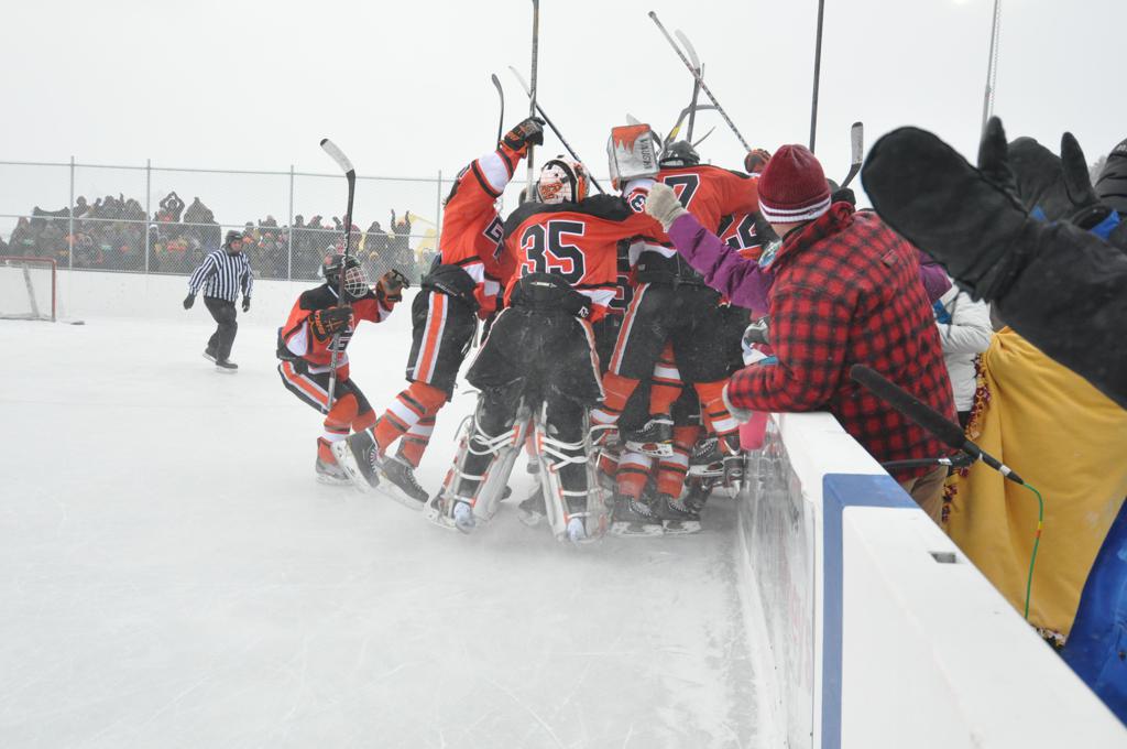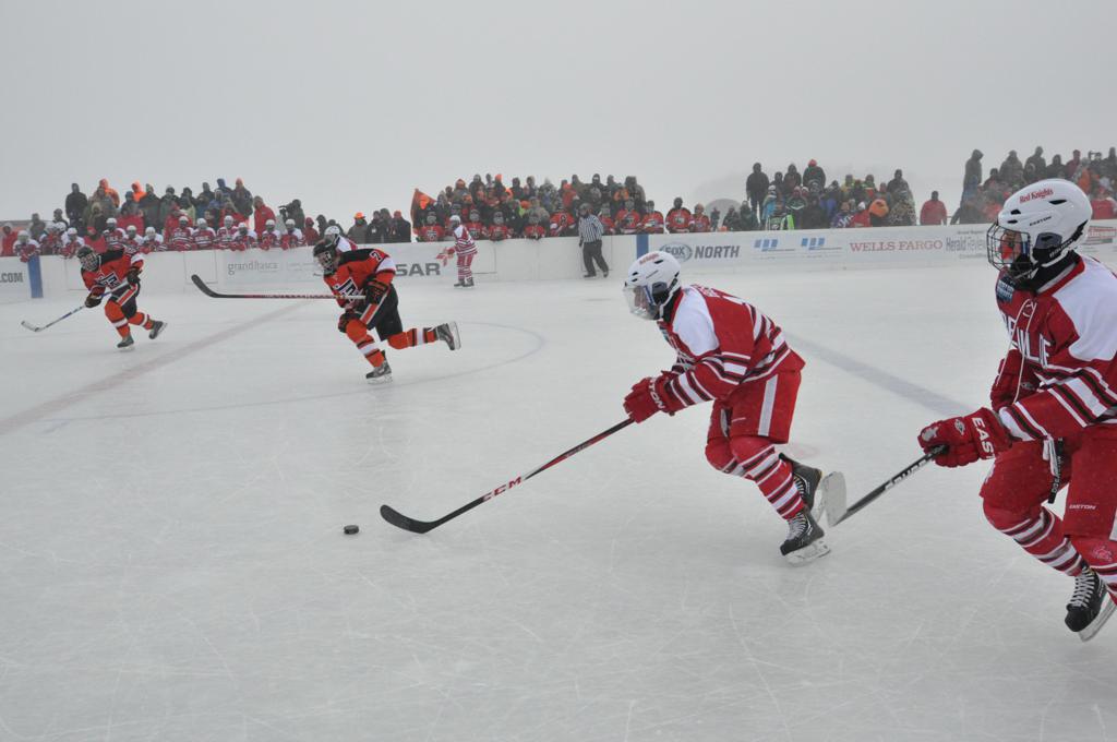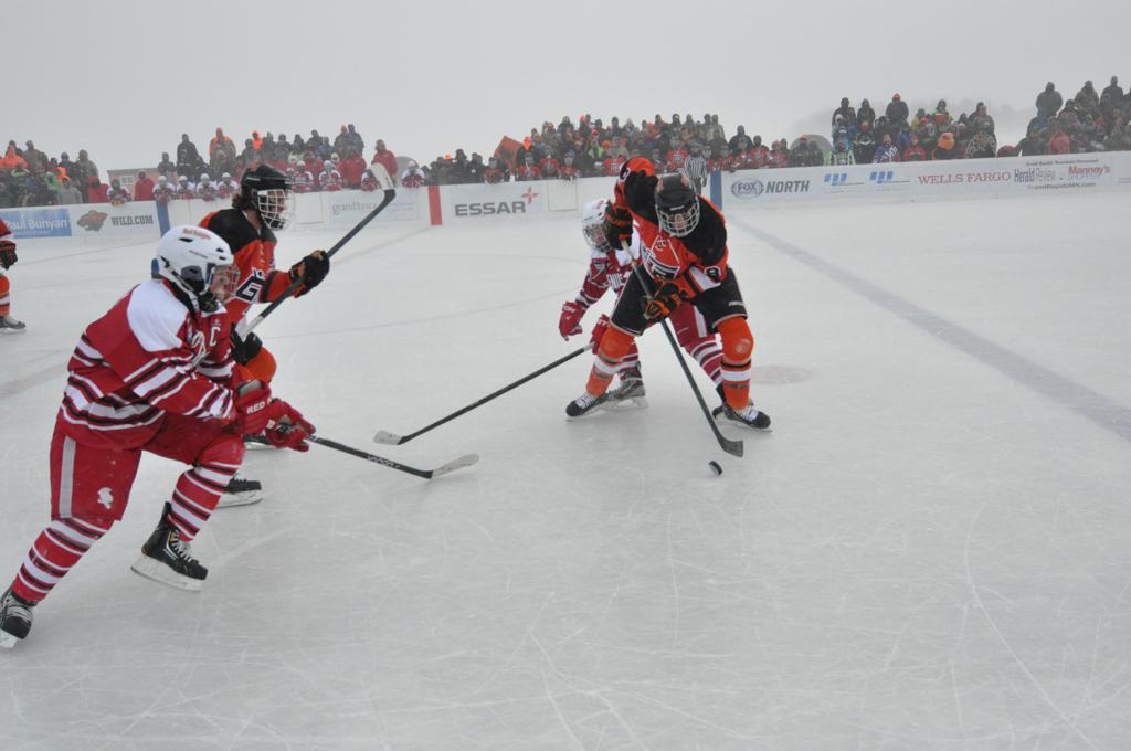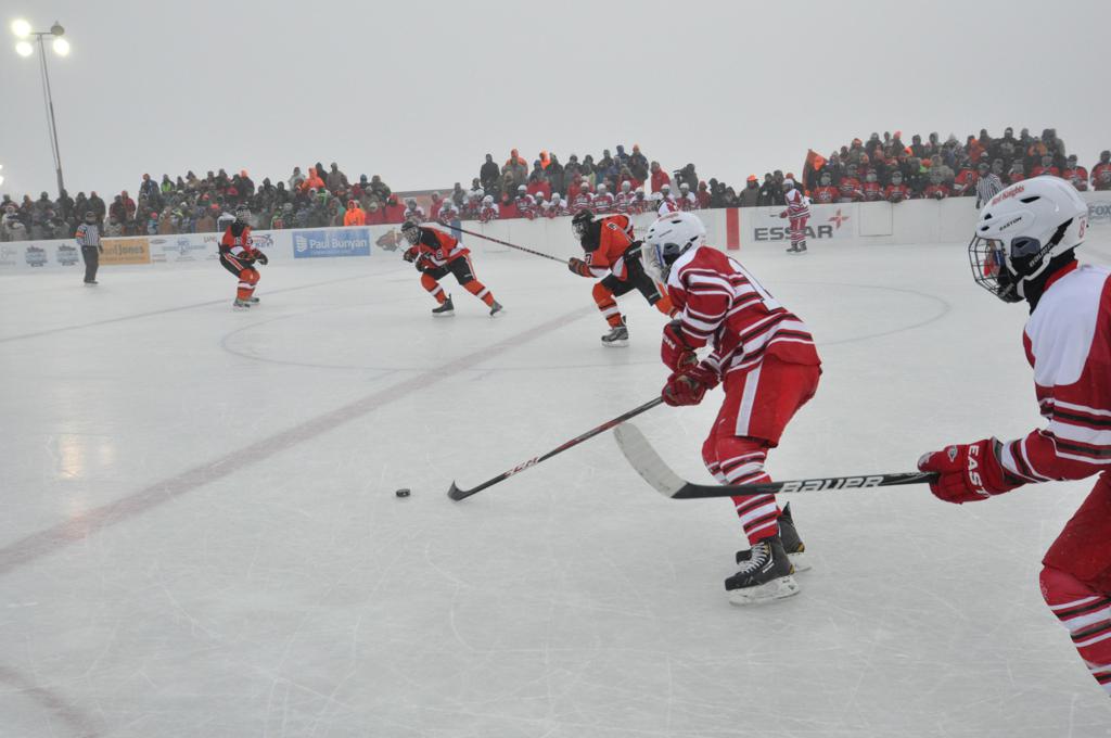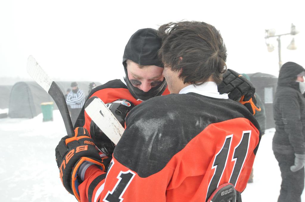 The outdoor games were also fraught with some heavy winds, and near white out conditions during the games. It was quite the sight, and very tough on the kids to keep the puck moving across the ice.