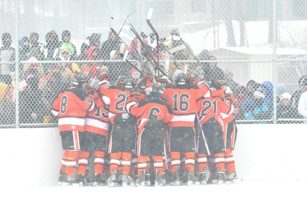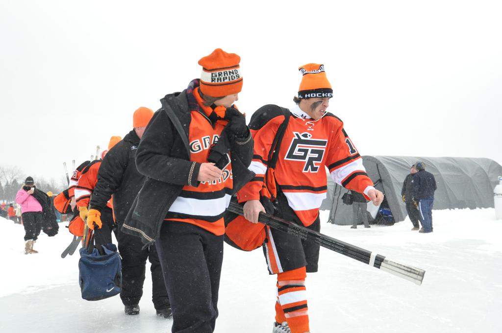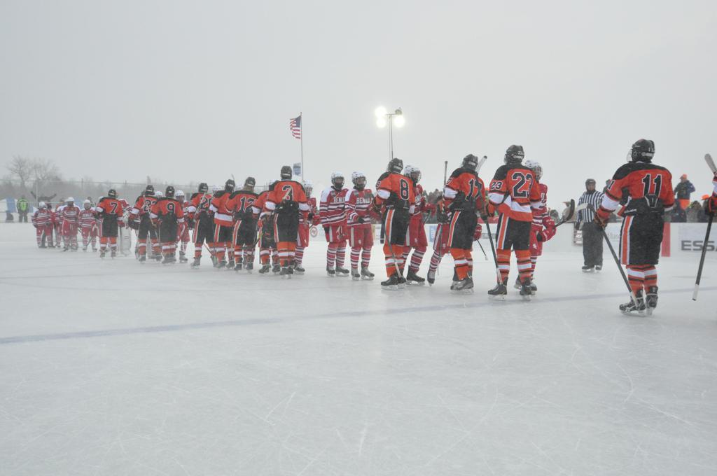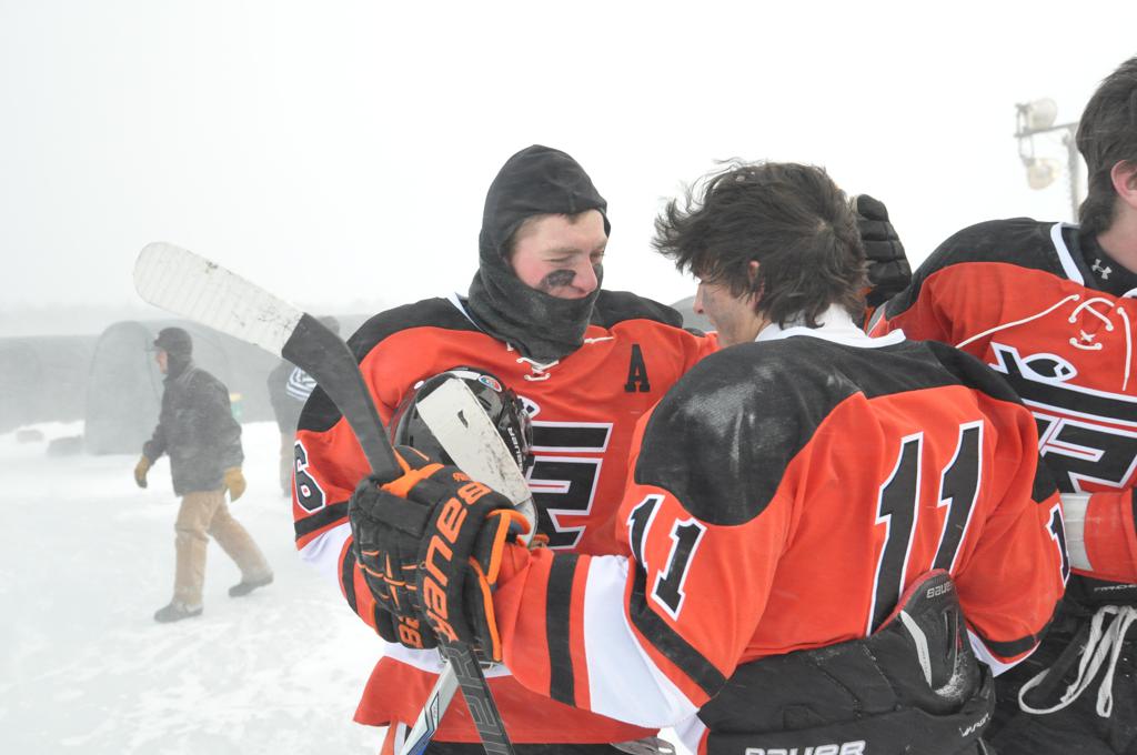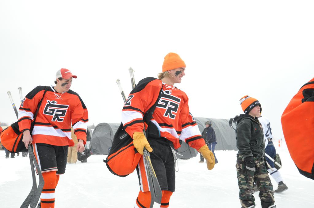 The outdoor games were also fraught with some heavy winds, and near white out conditions during the games. It was quite the sight, and very tough on the kids to keep the puck moving across the ice.