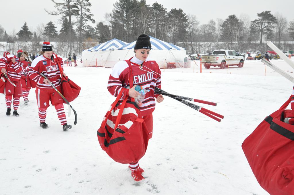 Girls once again took part in the day, and although the Halloween Machine has a storied history and a tradition of excellence among the ranks in Minnesota, the girls program was in its infancy relative to the boys program. It was only a few short years prior to HDM Grand Rapids Hockey Association fielded its first hockey team. Lake Pokegama play host on the frozen lake, and although the frigid temperatures of the 2nd HDM were colder - the wind coupled with the colder temperatures across the lake were so cold, it created white-out conditions during the latter periods of the marquee Grand Rapids vs. Benilde game, and a few set-up tents on the lake started to blow away across the ice surface. (It was so chilly, following the game and quick hand shakes - the teams quickly departed the ice surface on the Lake to their respective locker-rooms, and we were not able to obtain any team photos as a group (a few of the photos in the photo slider below were not edited to show the extreme nature of how the day actually was with very poor visibility). Jack Jablonksi was present on the cold ice surface to begin the game, in addition Bill Baker - 1980 USA Olympian and native of Grand Rapids, MN dropped the ceremonial puck to begin the days festivities. Following a dramatic hometown win by the Thunderhawks of Grand Rapids over a strong Benilde team, the x5 friends that made the trip with me to the 7th annual HDM made our way to the then 4th annual Bisch Bash (Itasca Area Crisis Cancer Fund - IAACF) at the Eagles Club that was across from our hotel. While WALKING into the Eagles club a large fight erupted by a few locals, that reminded us all of the movie RoadHouse that was quickly de-escalated by Grand Rapids finest police. Team Bisch is a team of about 30 volunteers that started a non-profit to assist a friend suffering from cancer, and evolved into something much bigger. It was created in Jackie Bischoffs memory and a fund to provide small crisis grants to families and individuals dealing with cancer in the Itasca County area. During the calendar year 2012, IACCF awarded 150 crisis grants totaling over $50,000.