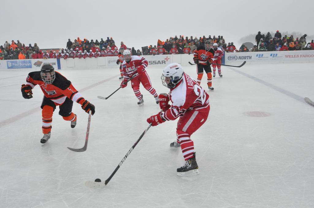For the 7th edition of HDM, it continued a tradition of northern Minnesota to Twin Cities, and back to Northern Minnesota of what fans were thinking was a newly found tradition of 'how it would be yearly now going forward' with this North-South arrangement. The game marked the first HDM on an actual lake surface, but was the 3rd such rink created on a natural frozen body of water (Baudette