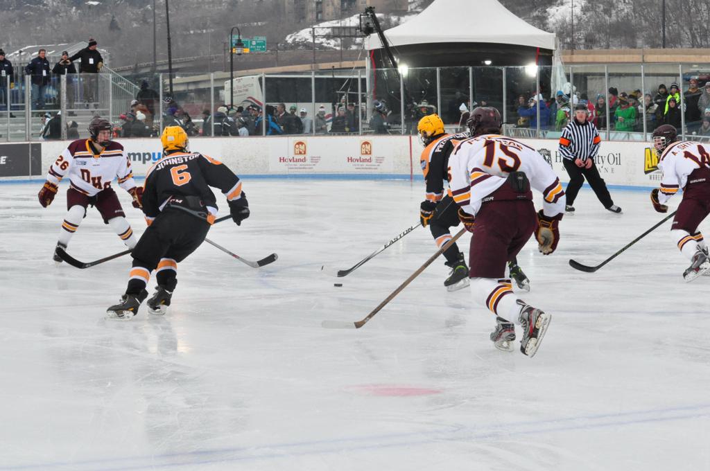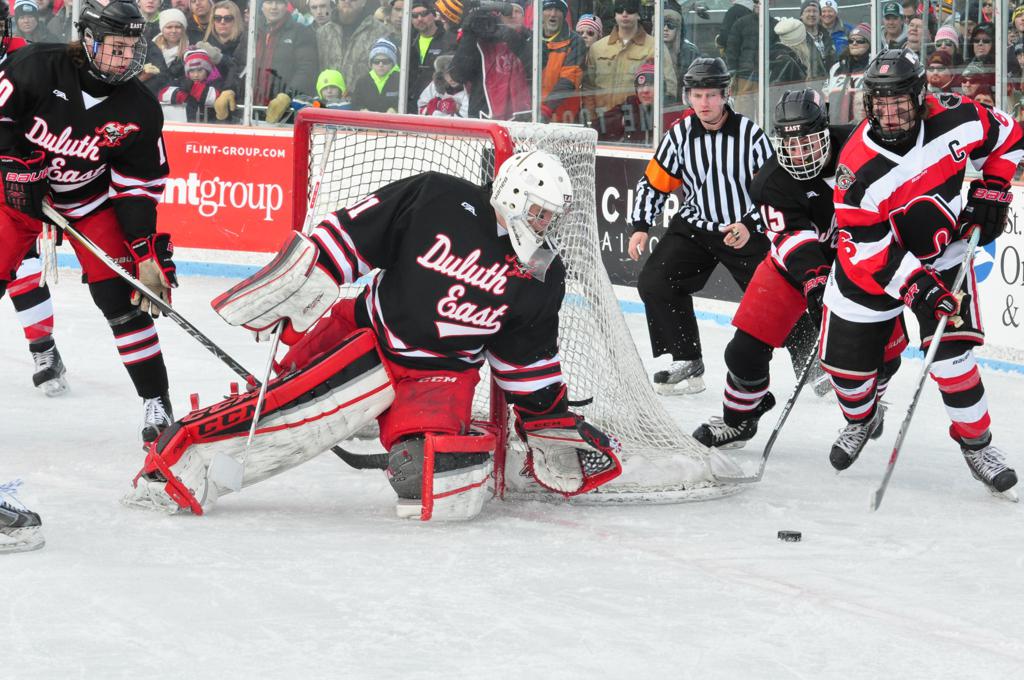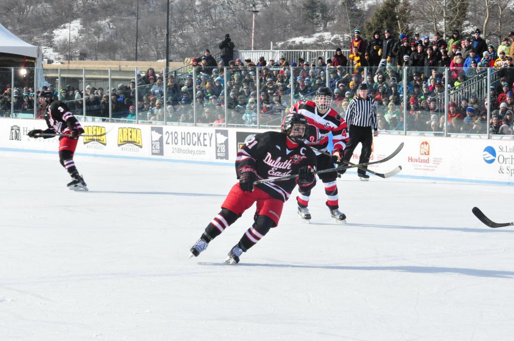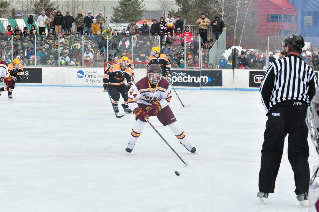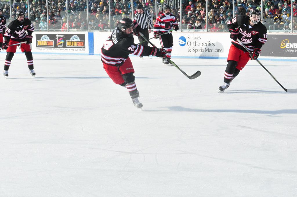 Hockey Day Minnesota would travel back up North, this time taking place at picturesque Bayfront Park in Duluth. With Lake Superior as a backdrop, the boys of Duluth-Denfeld would get the best of Eveleth-Gilbert by a 5-2 margin. Next up was a battle between a couple powerhouses as the boys of Lakeville North brought their road game and outlasted Duluth East in a 3-2 game by the lake.