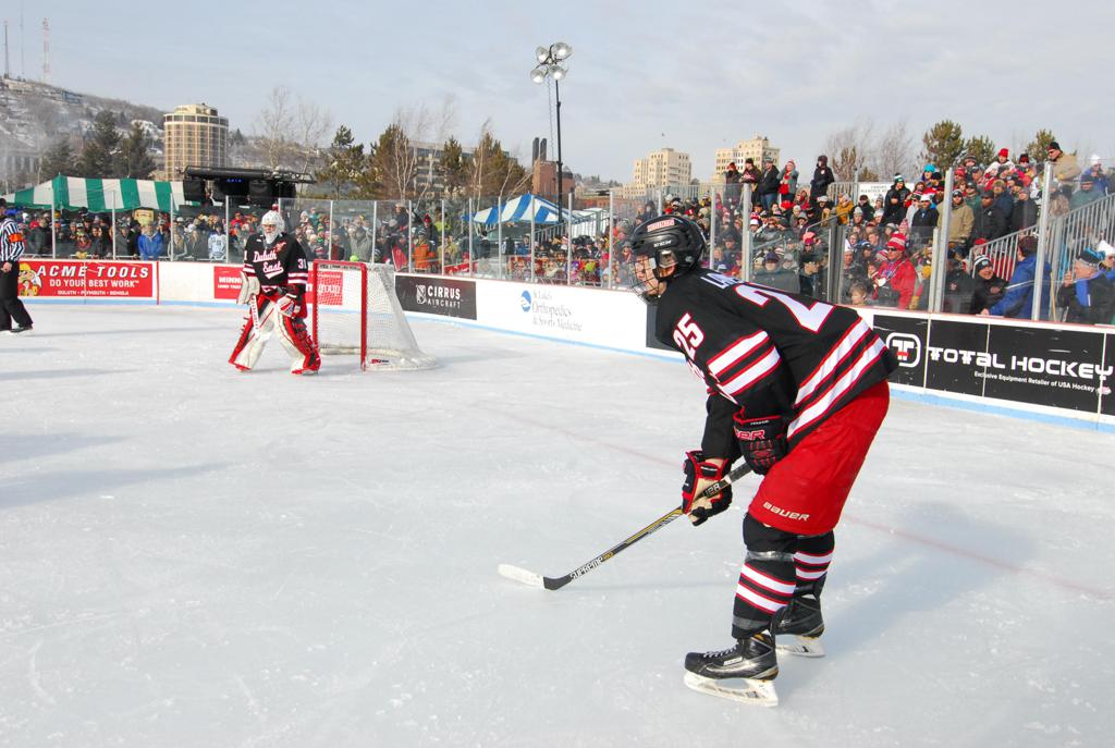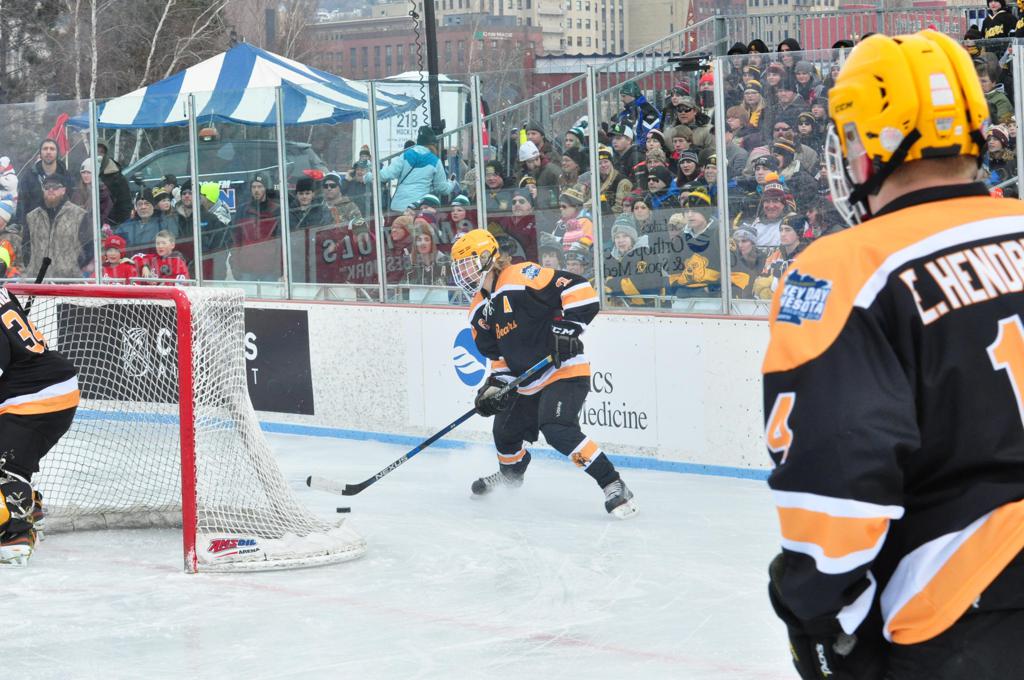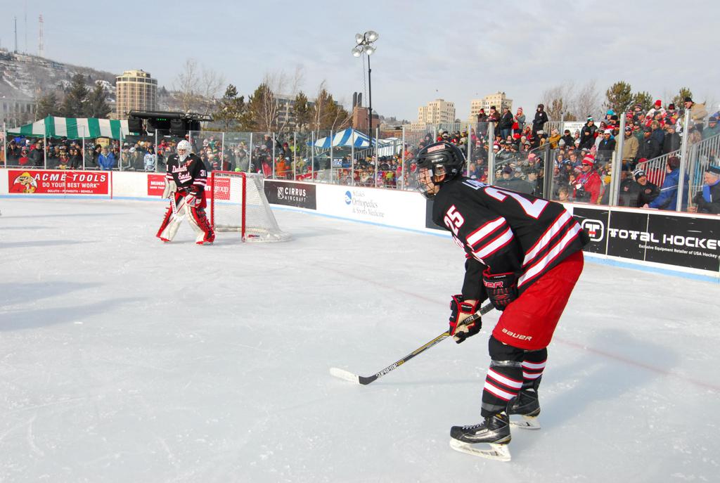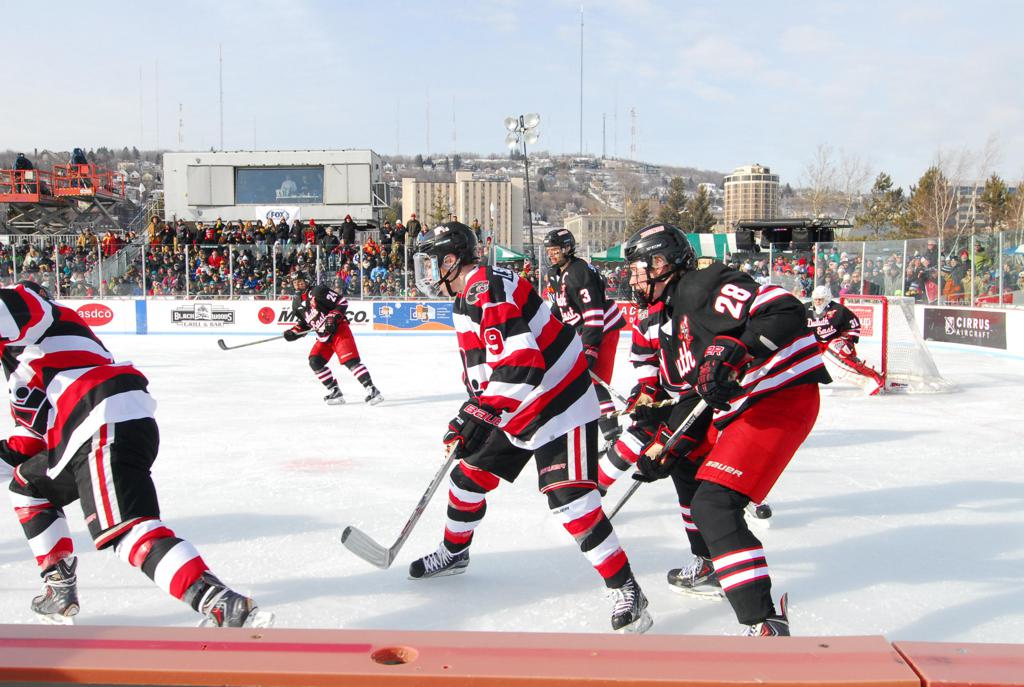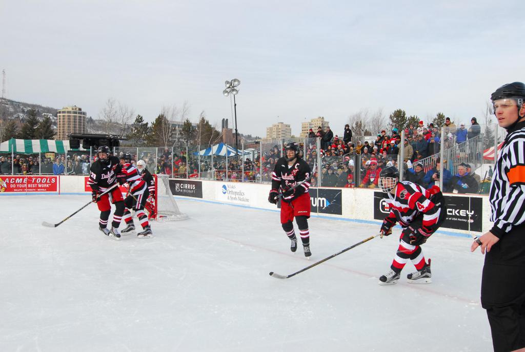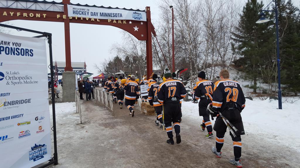 The 10th Anniversary edition of HDM moved to shores of Lake Superior in Duluth, MN scenic Bayfront Park - the self proclaimed and rightful moniker of USA's Outdoor Hockey Capital, where Duluth maintains some of the most community and association run rinks in the City at 37, which makes up the rich hockey legacy of Duluth hockey history dating back to the 1890's. In 2014 alone, more than 800 youth played hockey, equating to 10% of all students. The long list of collegiate and professional players, coaches and hockey professionals with roots in the Zenith City continues to grow. It was only fitting that the 10th HDM be in Duluth, with the historic picturesque Duluth Aerial lift bridge in the background. The first ever U.S. born player in the NHL started his career at Lower Chester, and Duluth's Hobey Baker award winners laced their skates at Piedmont and Duluth Heights, and former NHL players and Olympians learned to cross over at Glen Avon.