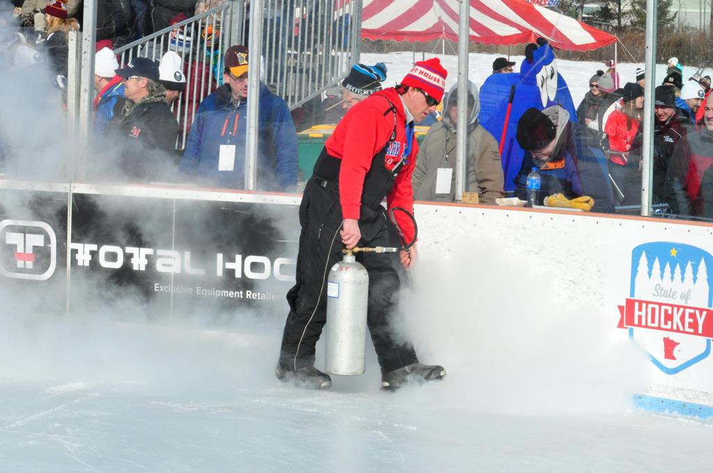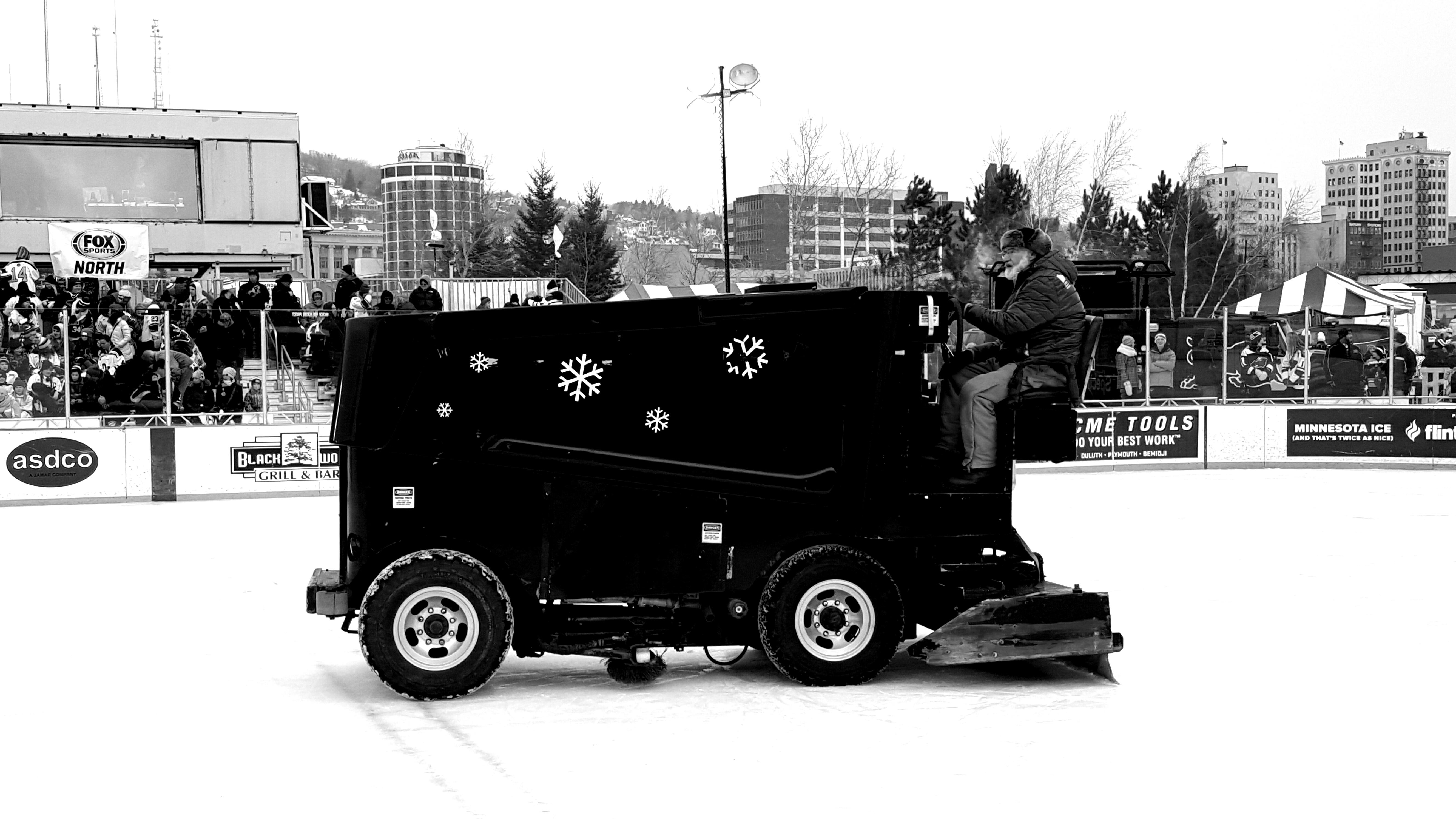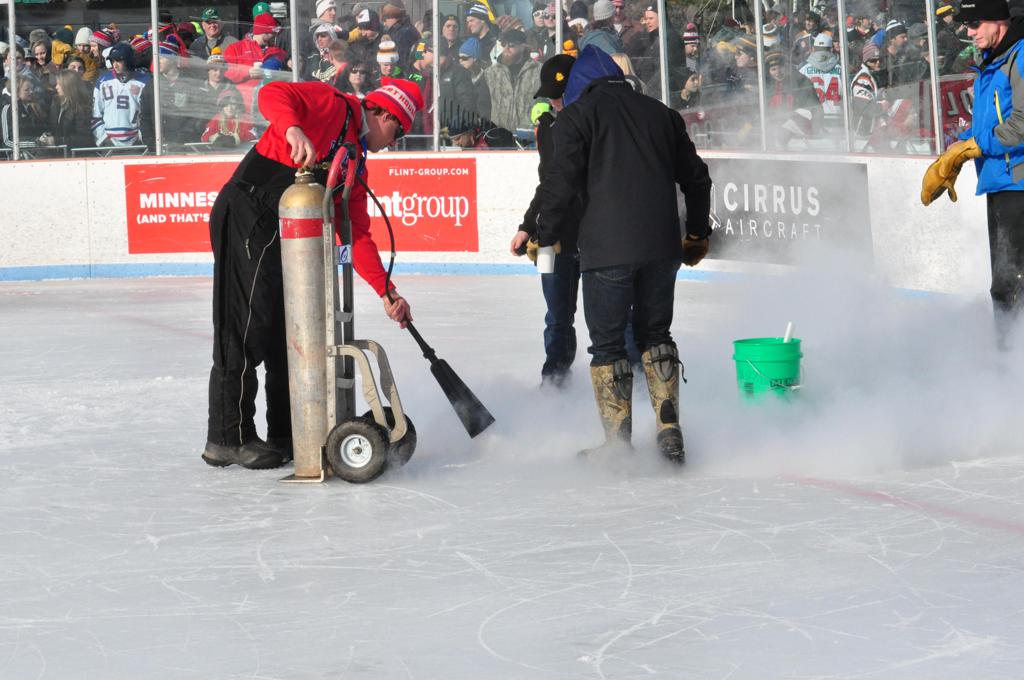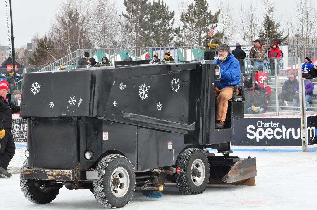 Bayfront Park and Duluth event organizers assembled quite a spectacle on HDM, including the first ever Hockey Festival Park including numerous local merchants selling products, etc. that has carried onto future cities following. For the event, they pulled out the old style propane Zambonis, and hired the old DECC Zam operator for the day.