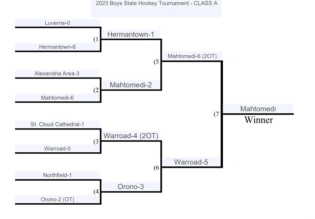 When the team that’s seeded third in the boys state hockey tournament looks at the bracket, the path seems pretty clear: Beat an unseeded opponent in the quarterfinals, get past the No. 2 seed in the semifinals and knock off the top seed for the championship. That was Mahtomedi’s plan in this week’s Class A tournament at Xcel Energy Center and they executed it to perfection. The Zephyrs beat Alexandria 6-3 on Wednesday, Hermantown 2-1 on Friday and topped things off with a 6-5, double-overtime win over previously unbeaten Warroad on Saturday.
