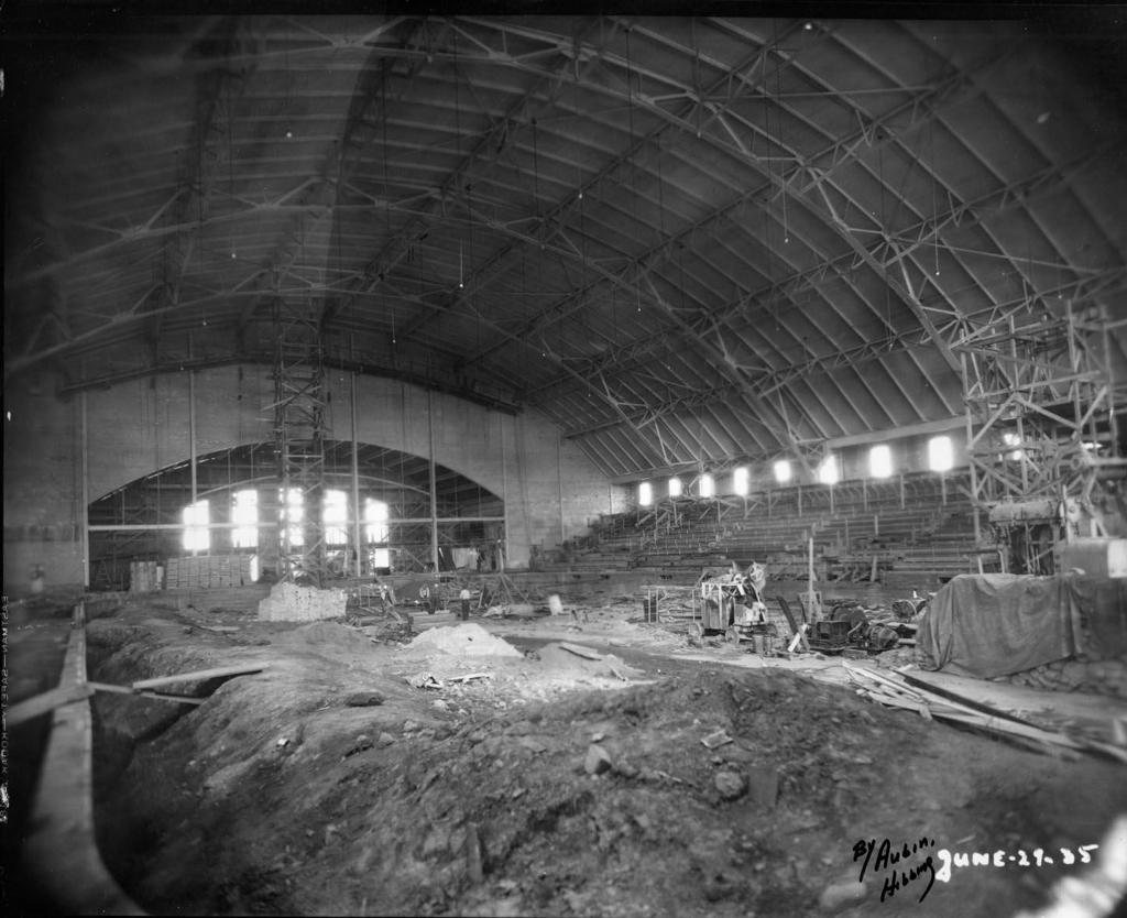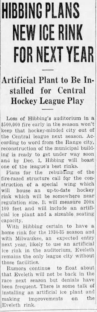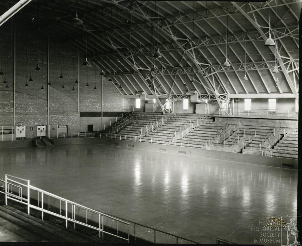 The Hibbing Memorial Arena Entertainment Center, designated for recreational and civic use, was initially built in 1925 and called the Hibbing Recreation Building, and was dedicated to World War I veterans. On December 28, 1933 a fire completely destroyed the building, which started at 1:15 a.m. that was later found out to be due to defective wiring. The building was rebuilt and completed in 1935, in the exact location of the original arena in Hibbing Minnesota for the Hibbing Blue Jackets hockey team, and other city municipal events. The new Memorial Arena opened on December 2, 1935 and was re-dedicated to World War I veterans on November 20, 1935 becoming the first iron range ice arena to open with artificial ice, vs. others with natural ice. The centrally located rink - to the city of Hibbing and its surrounding communities - was used by the NHL's Chicago Blackhawks for their training camps on six occasions in the late 1930's and 1940's. The arrival of the professional Hawks brought nationwide attention from many to this range Dylan community. Ironically, many years later the Chicago Cougars of the newly formed WHA league also utilized the Memorial Arena for their training camp in the late 1970's. The arena is dedicated to the war veterans and the general public of the western Iron Range. The classic Memorial arena has 3,460 permanent seats with standing room for 1,000 more bringing the total arena occupancy level to 4,460 local "Jackets" faithfuls.