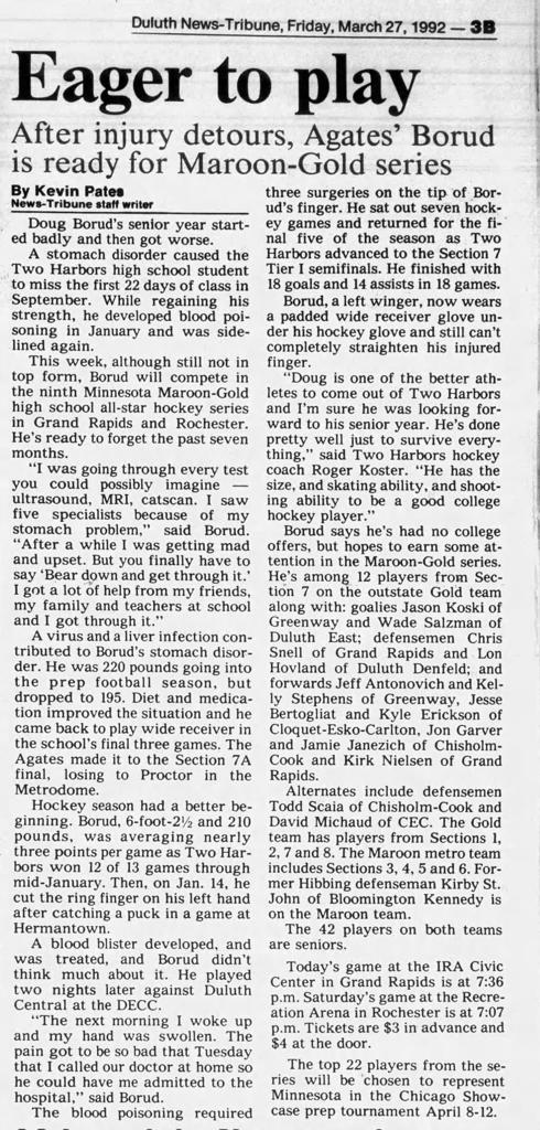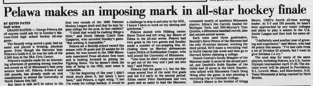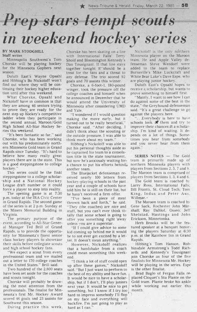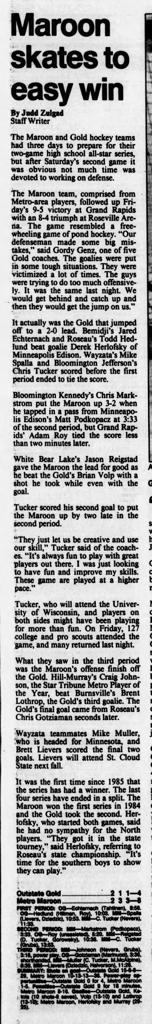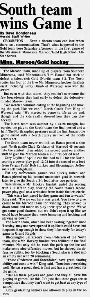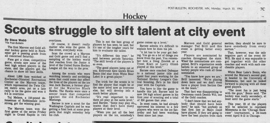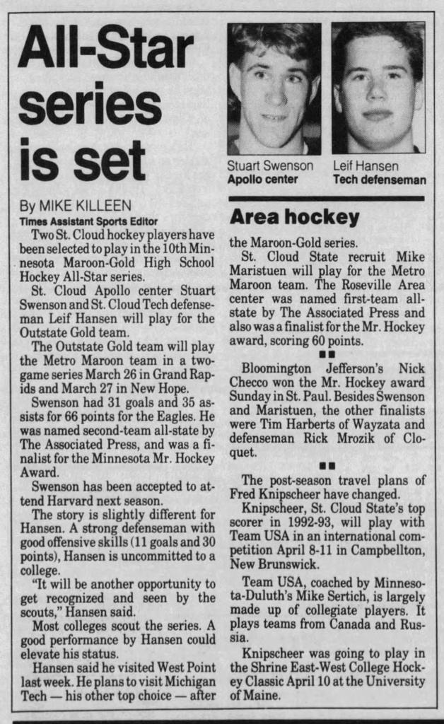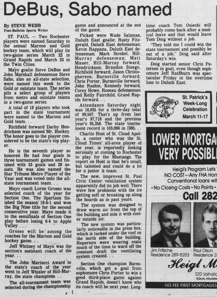 "It's a big opportunity for these kids. It's a showcase of Minnesota high school hockey talent. There is always tons of scouts there, and if the kids play well, they may garner some merit out of this thing" - Longtime Albert Lea Coach Roy Nystrom 1996.