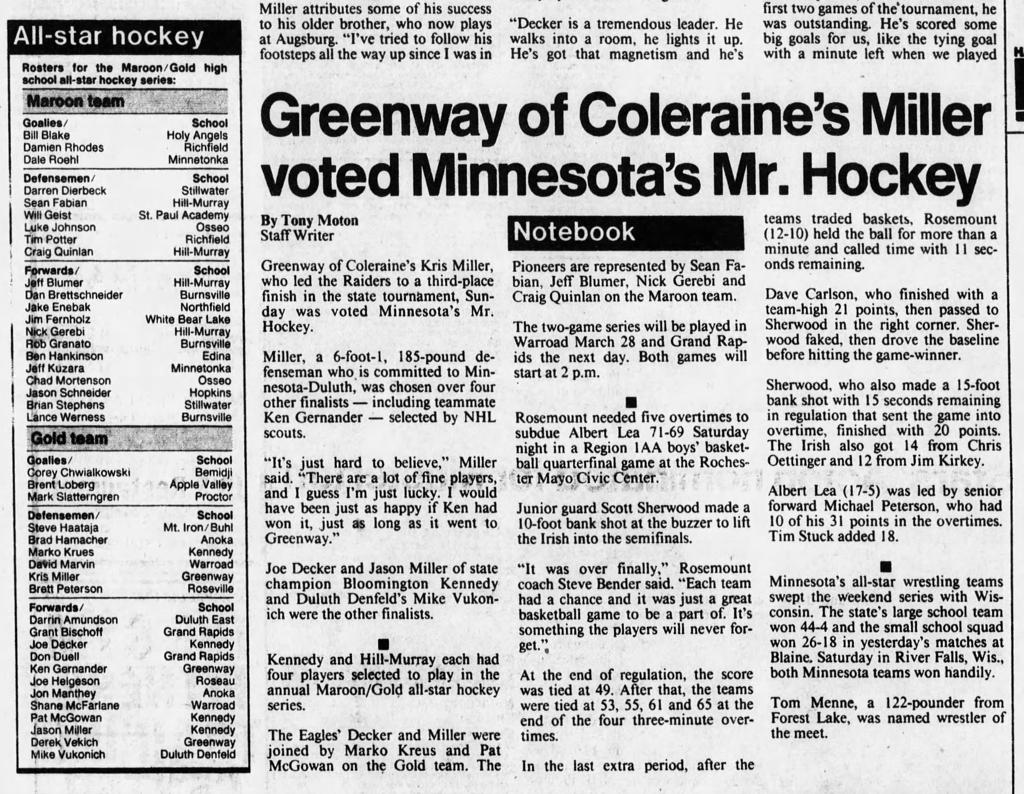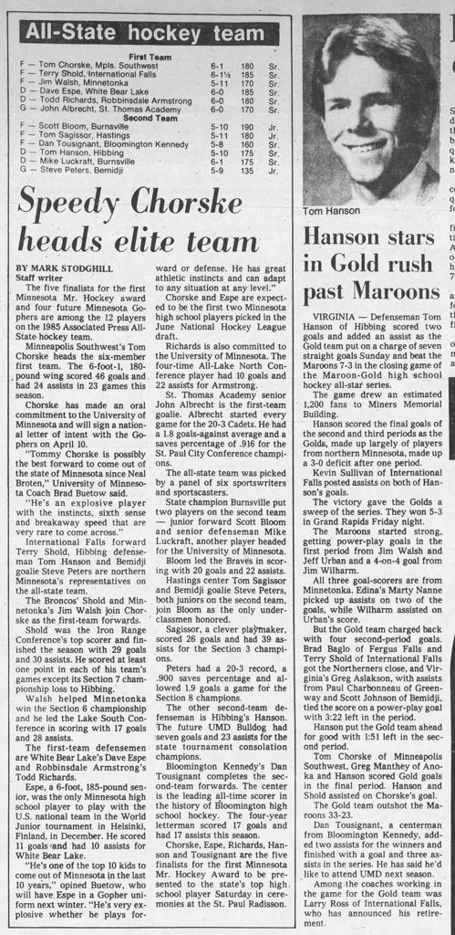 | Tom Chorske | F | 12 | Minneapolis Southwest |